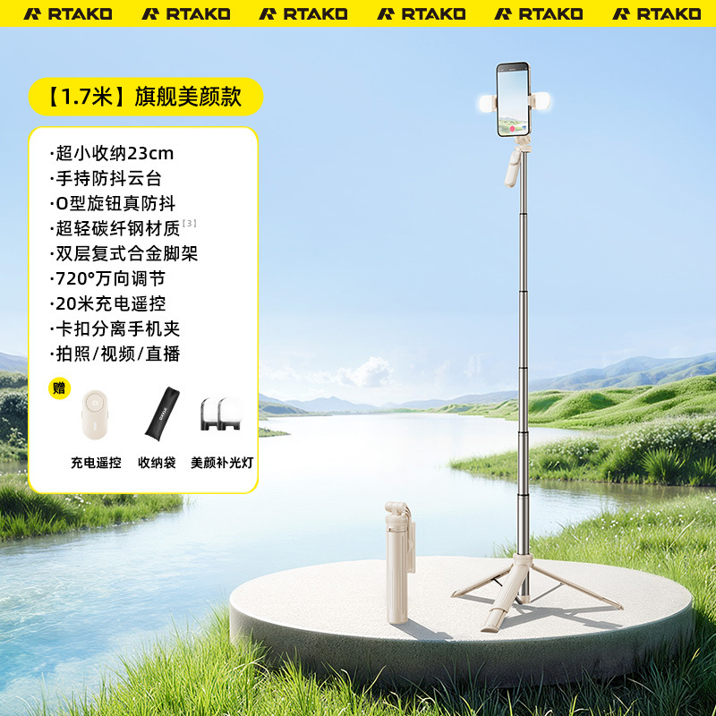• [1.7m 손떨림 방지 뷰티 모델] 무료 충전 리모컨 + 듀얼 뷰티 램프