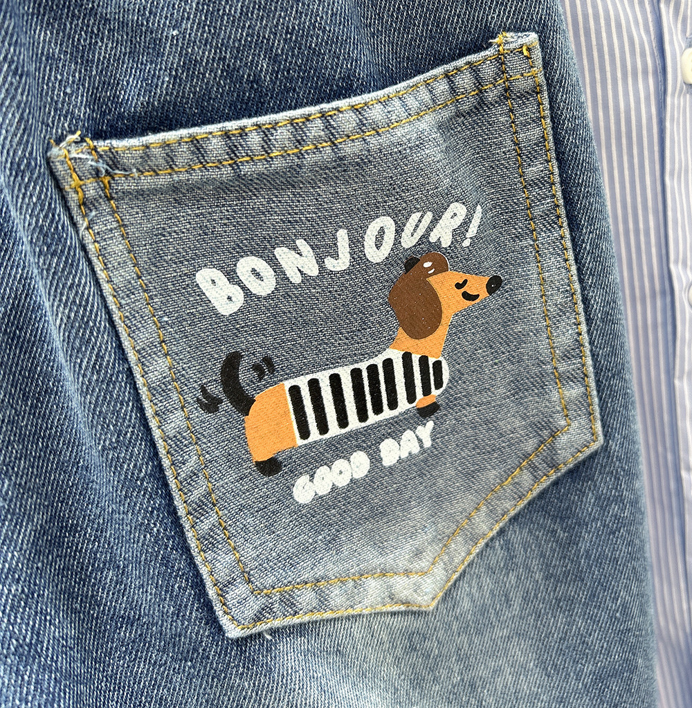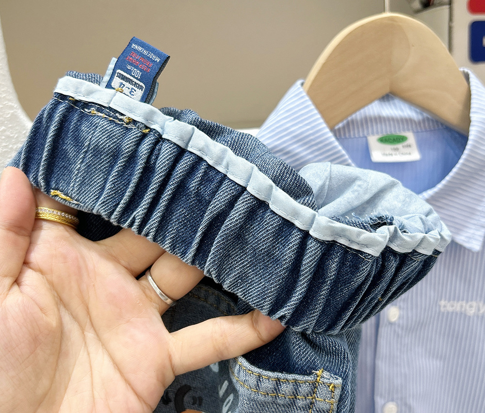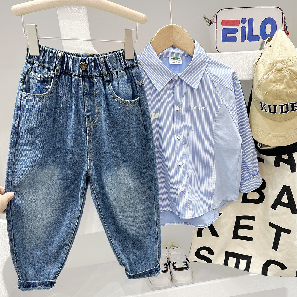 소년 봄, 가을 백 포켓 만화 청바지 2025 새로운 데님 바지 어린이 파란색 청바지 아동 의류스토어 가기