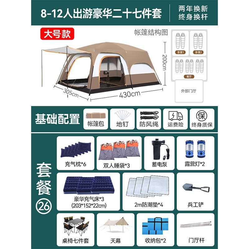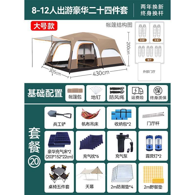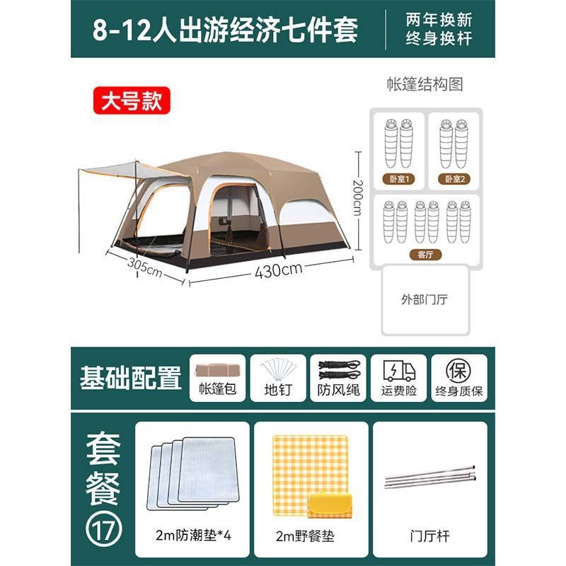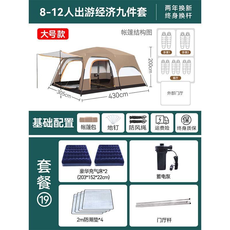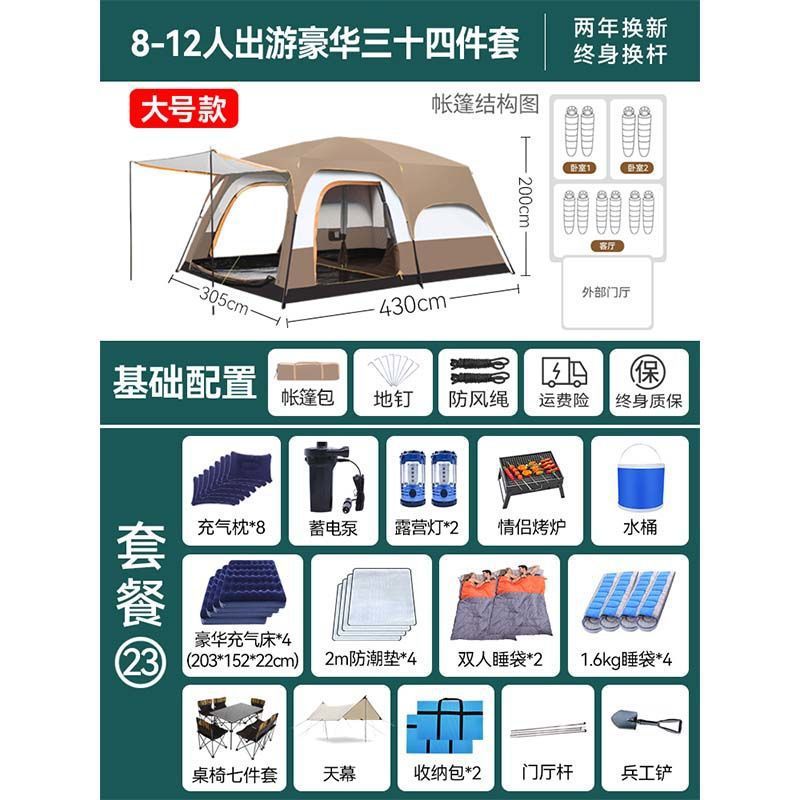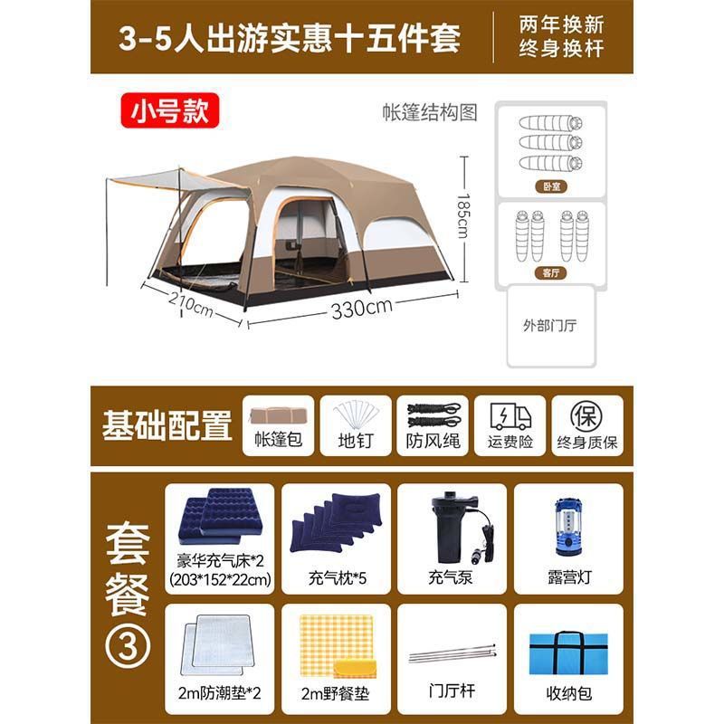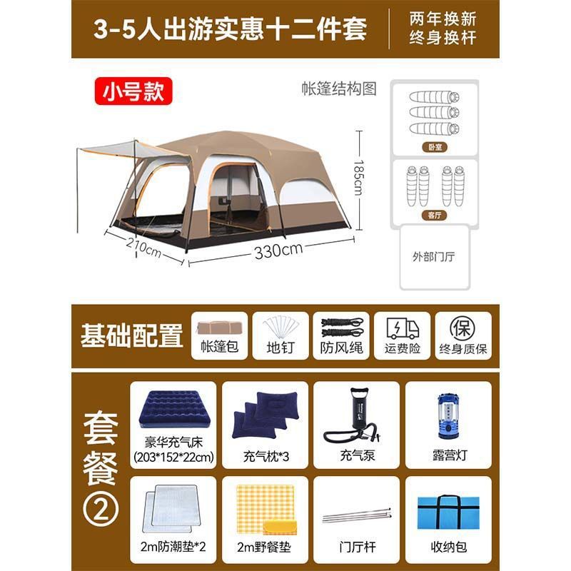 2개의 방과 1개의 거실 대형 텐트 야외 캠핑 용품 방수 캠핑 장비 풀 세트스토어 가기
