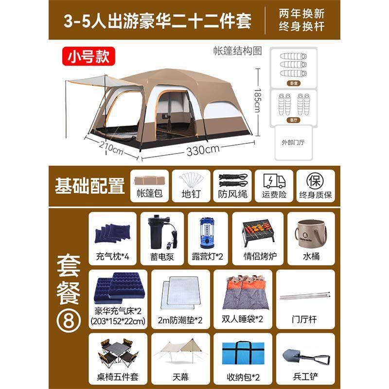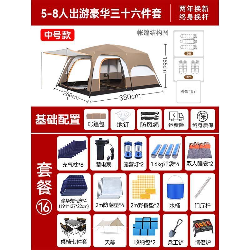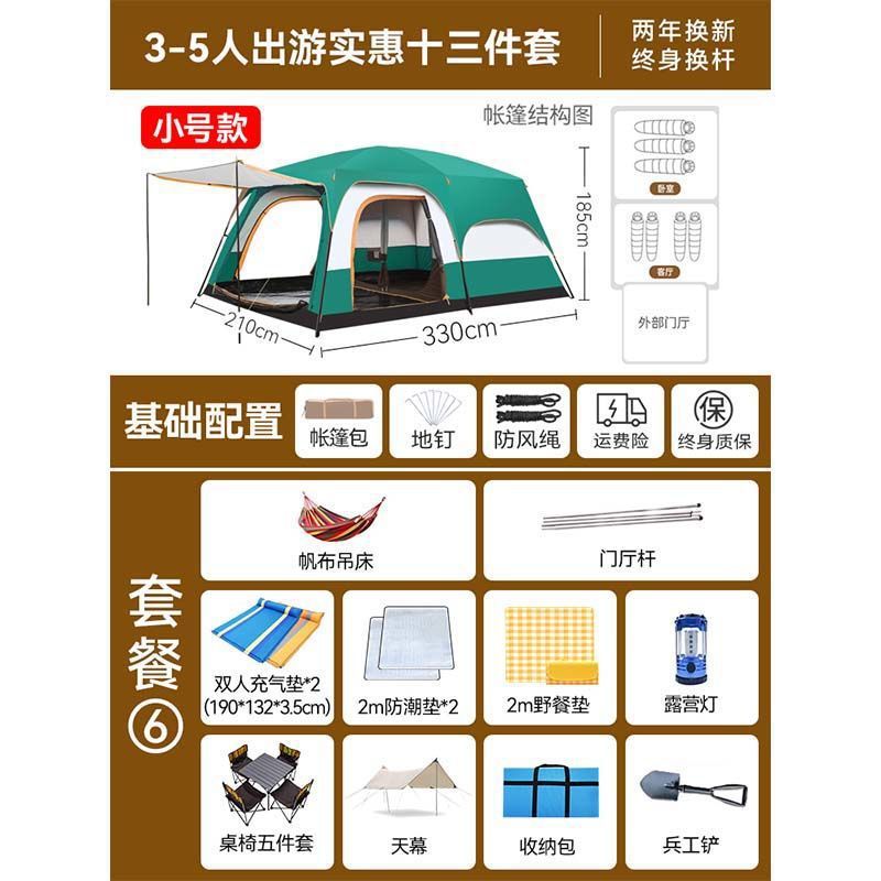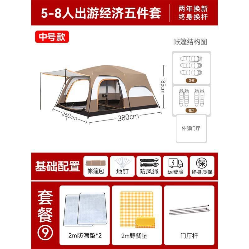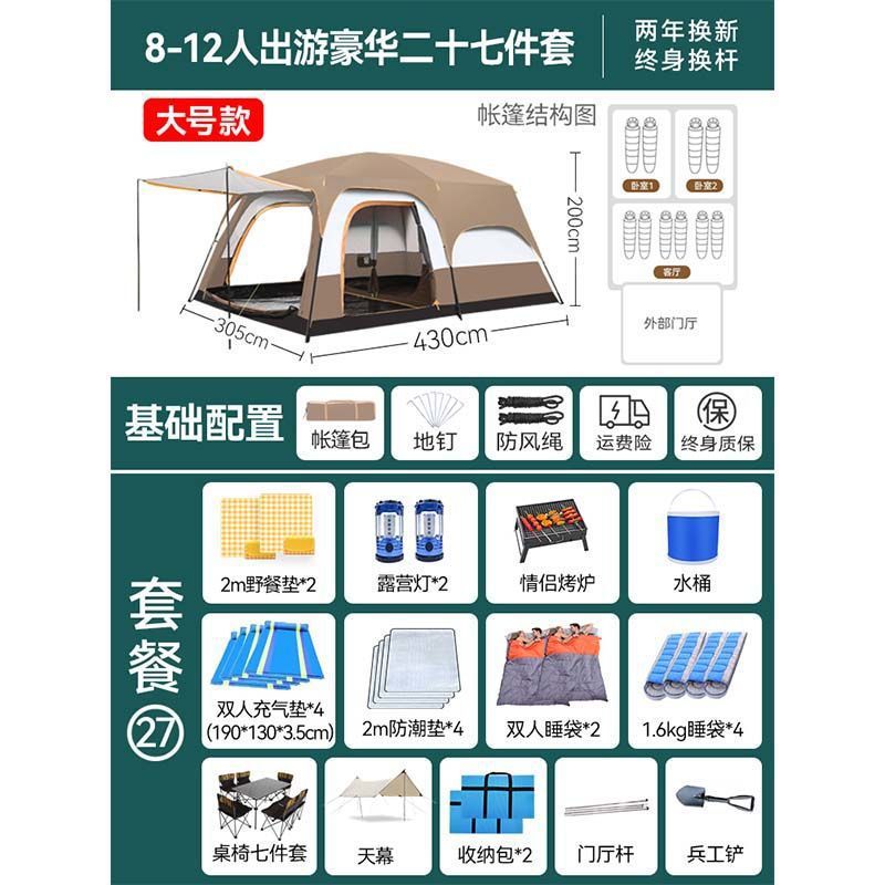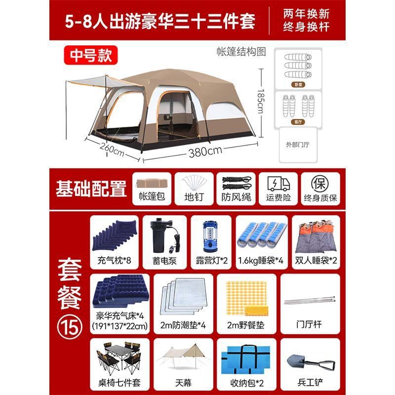 2개의 방과 1개의 거실 대형 텐트 야외 캠핑 용품 방수 캠핑 장비 풀 세트스토어 가기