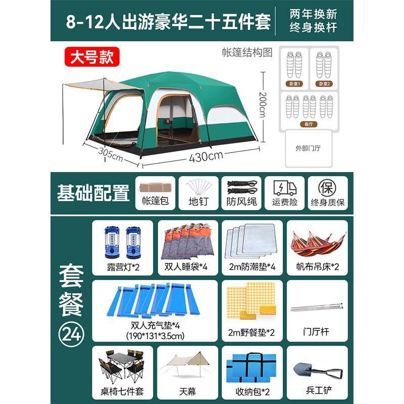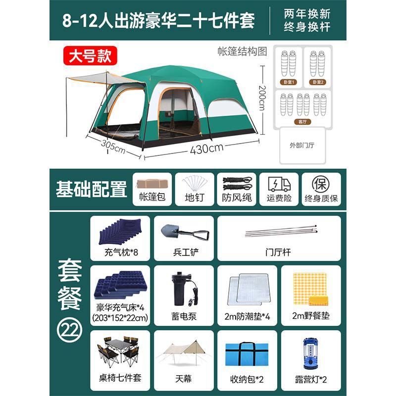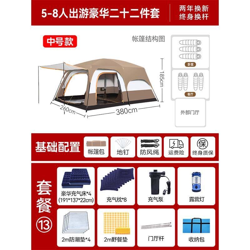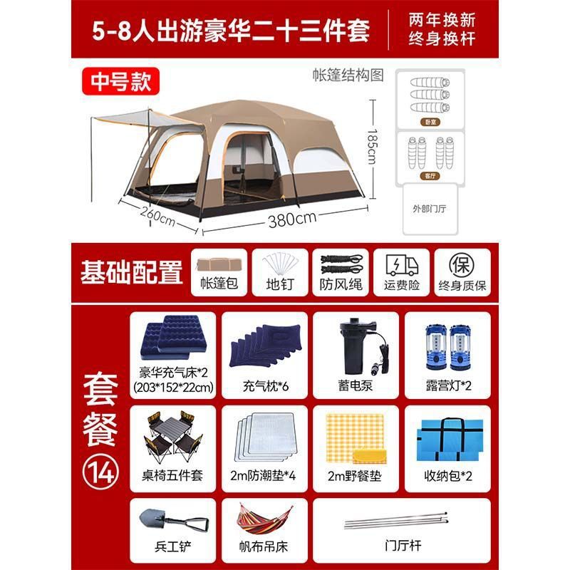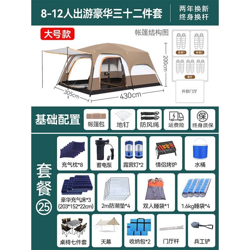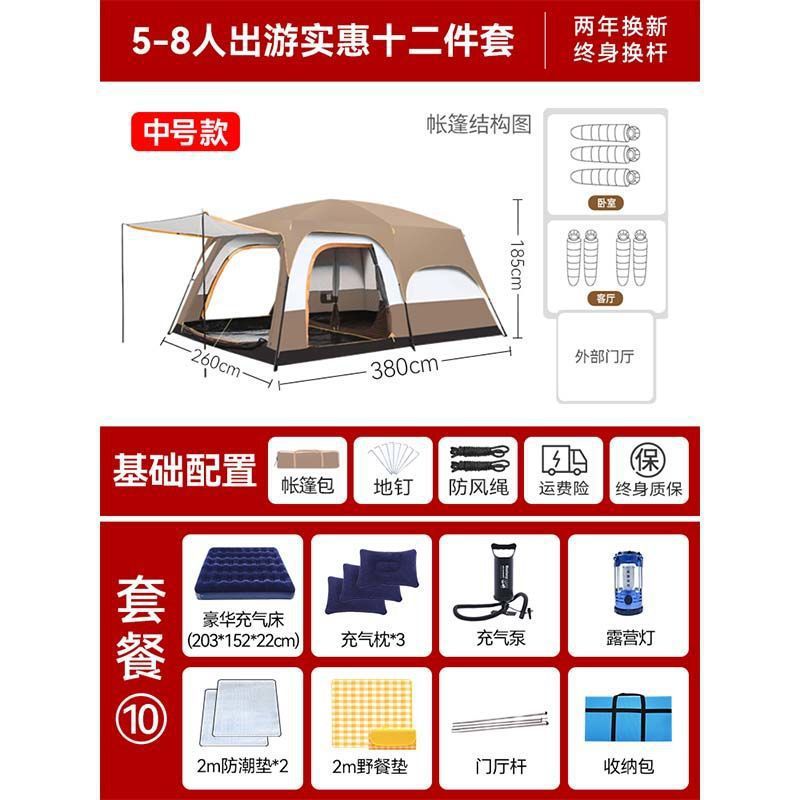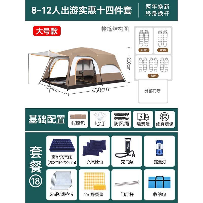 2개의 방과 1개의 거실 대형 텐트 야외 캠핑 용품 방수 캠핑 장비 풀 세트스토어 가기