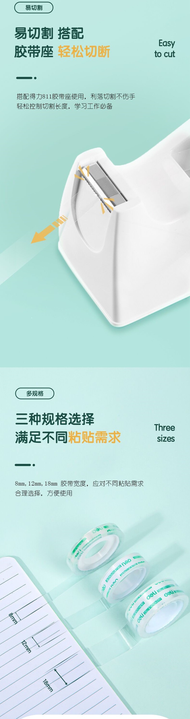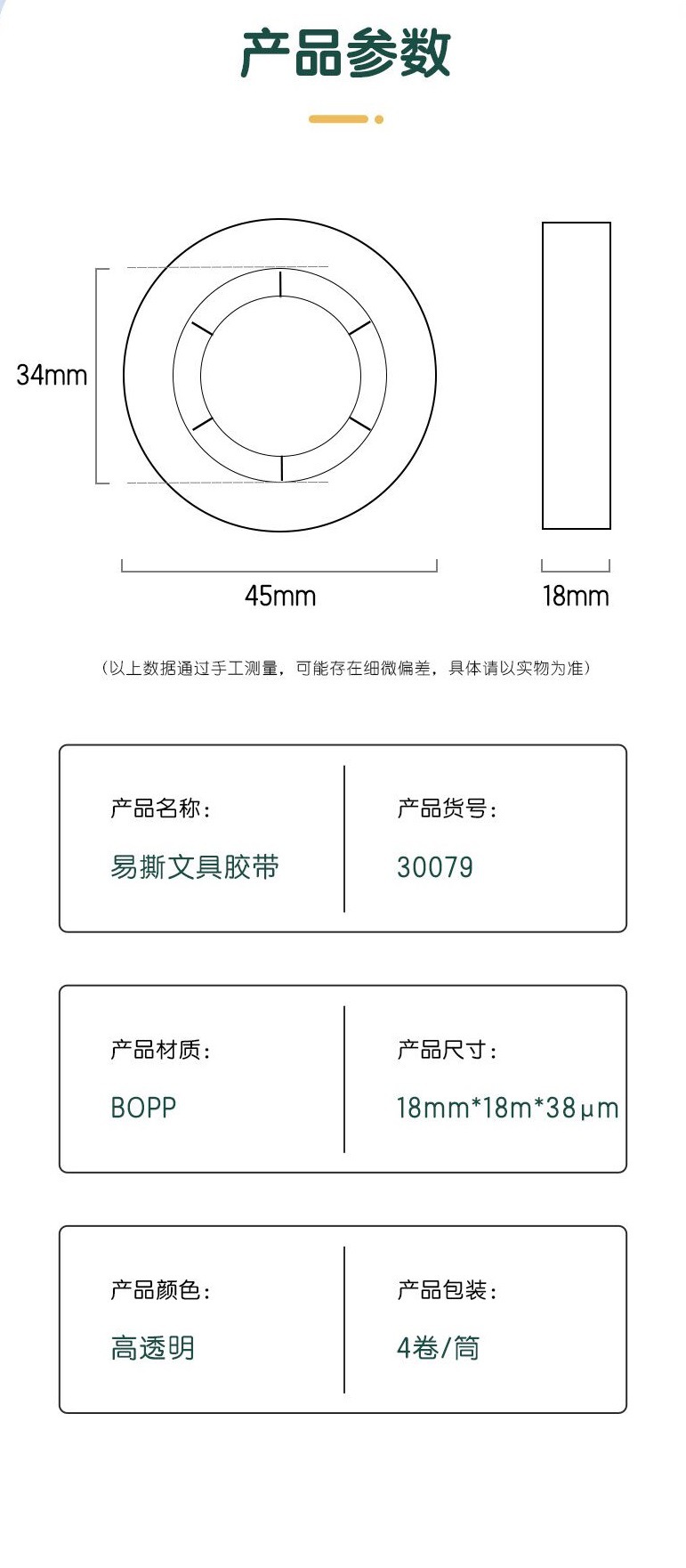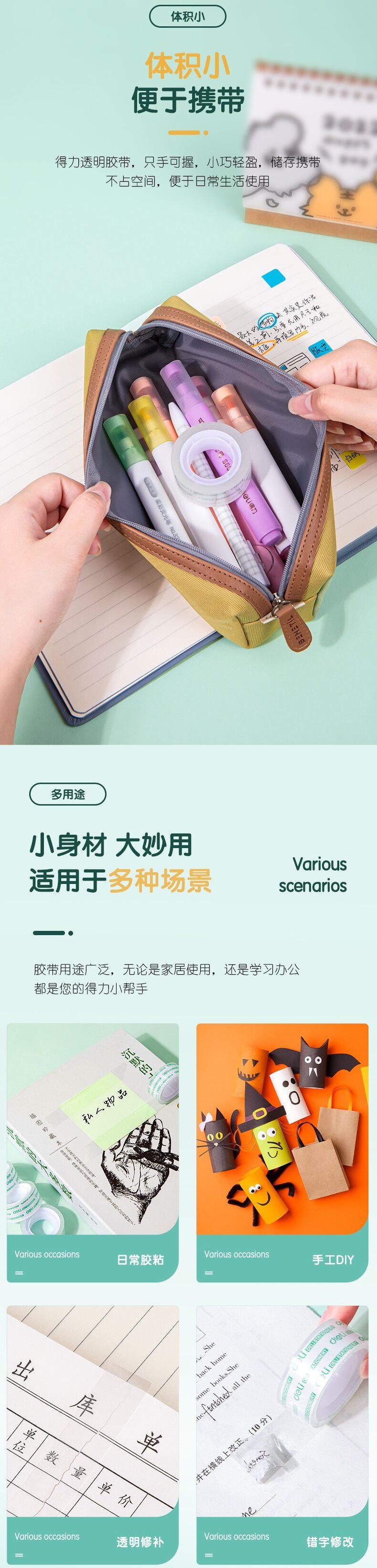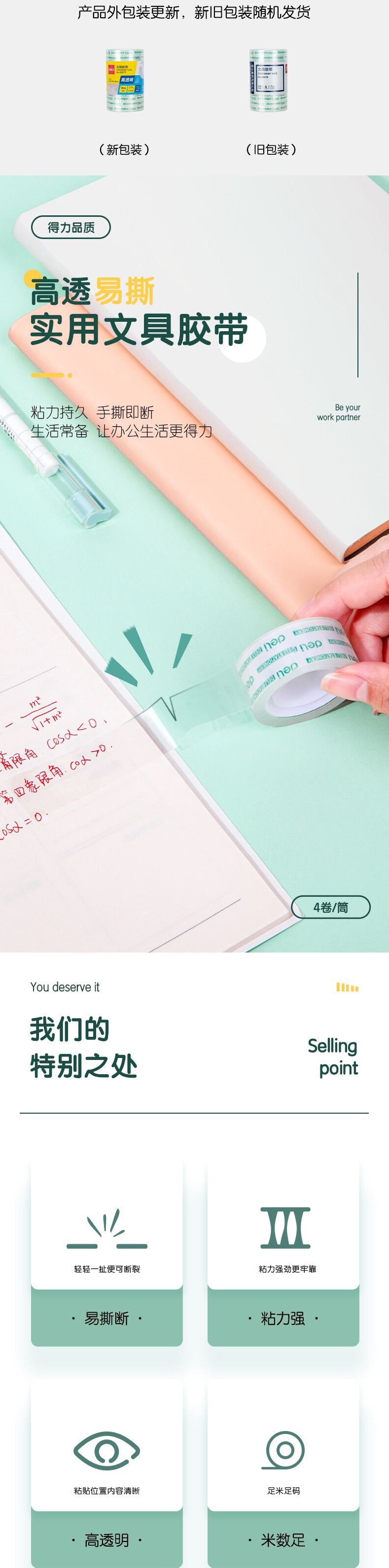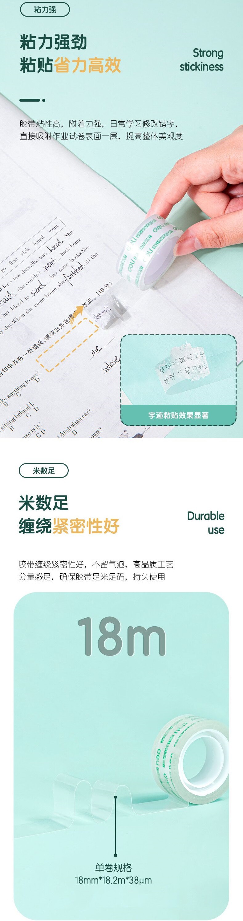 델리 30079 투명 학생용 테이프, 쉽게 찢어지고 오답도 붙일 수 있는 테이프 18mm*18m*38um 4롤/튜브