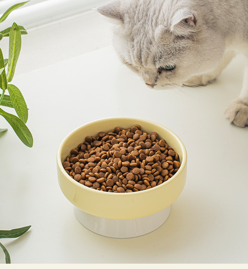 고양이 밥그릇, 세라믹 높은 발, 경사진 입구, 목 보호용 밥그릇, 뒤집기 쉽지 않음, 대구경, 검은 턱 방지, 성인 고양이 및 새끼 고양이 밥그릇