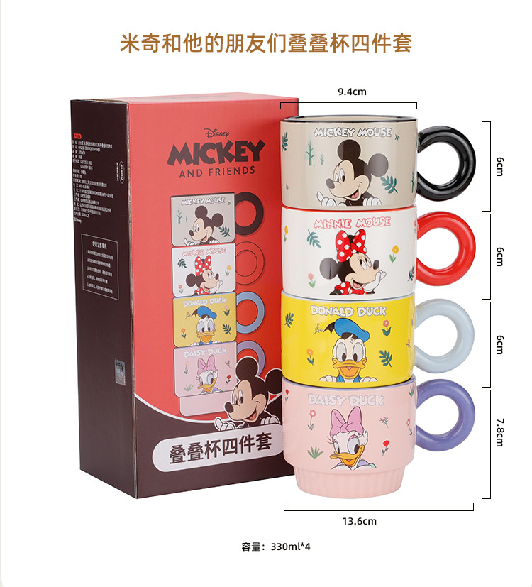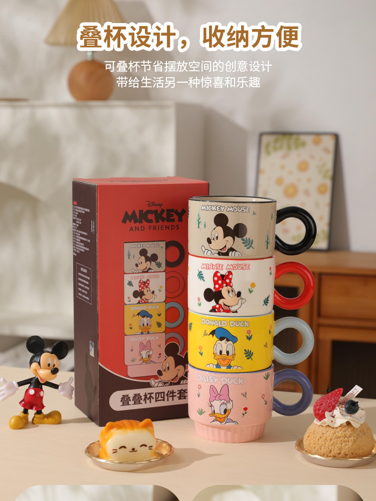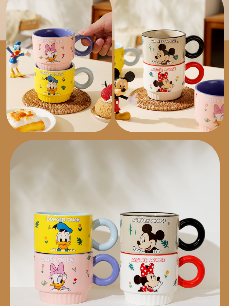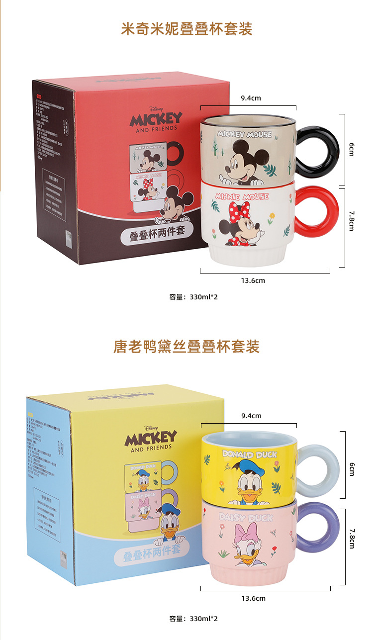 새로운 미키 가족 머그잔 귀여운 커플 세라믹 컵 세트 스태킹 컵 기념품 생일 선물 워터 컵