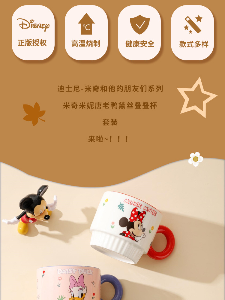 새로운 미키 가족 머그잔 귀여운 커플 세라믹 컵 세트 스태킹 컵 기념품 생일 선물 워터 컵스토어 가기