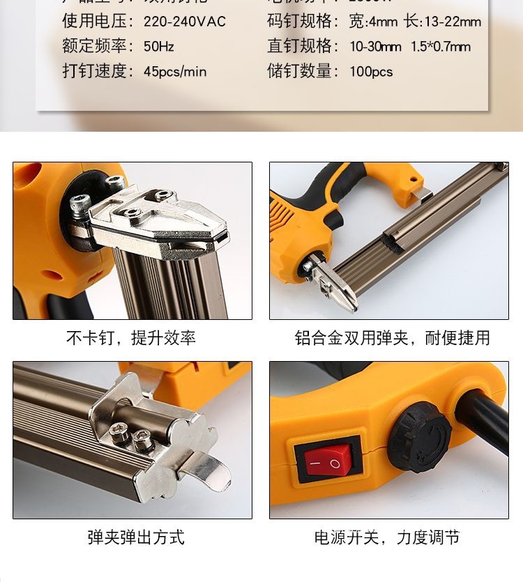 • 강도 조절이 가능한 이중 목적 네일건(상자에 포장)