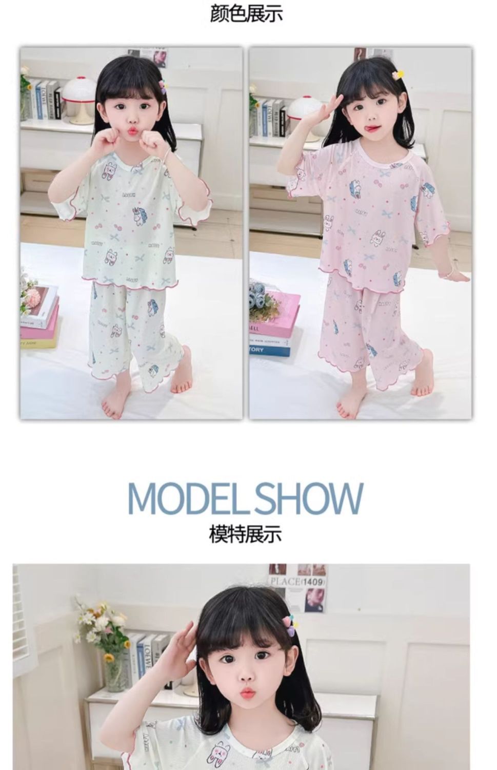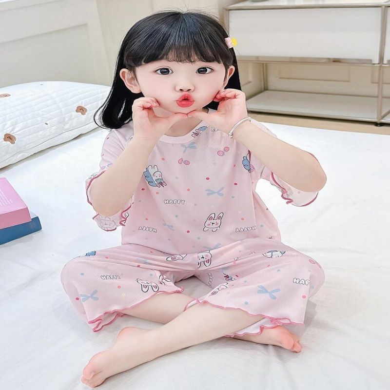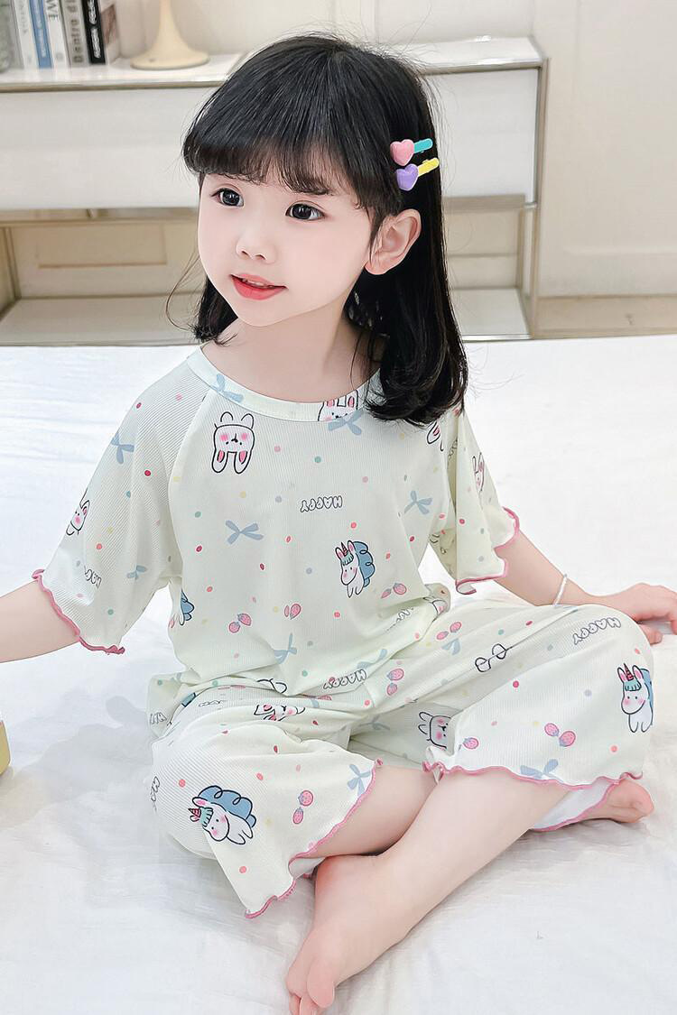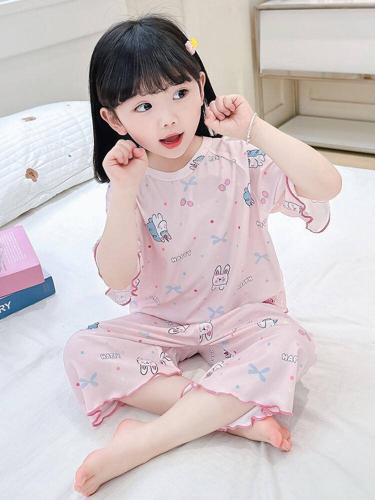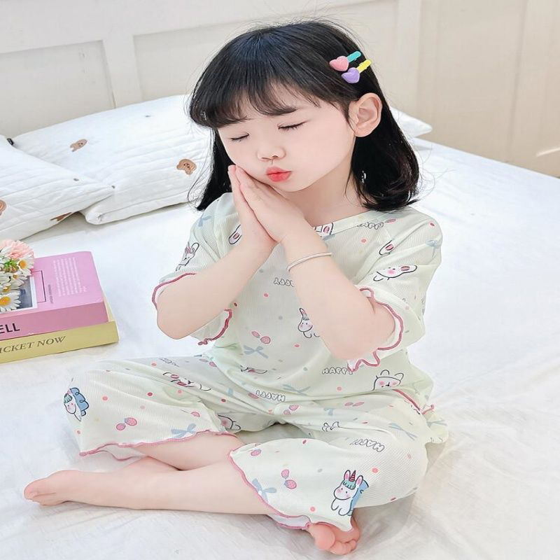 여자 잠옷 여름 정장 얇은 7 점 아기 반팔 새로운 에어컨 옷 어린이 얼음 실크 여자 가정 옷스토어 가기