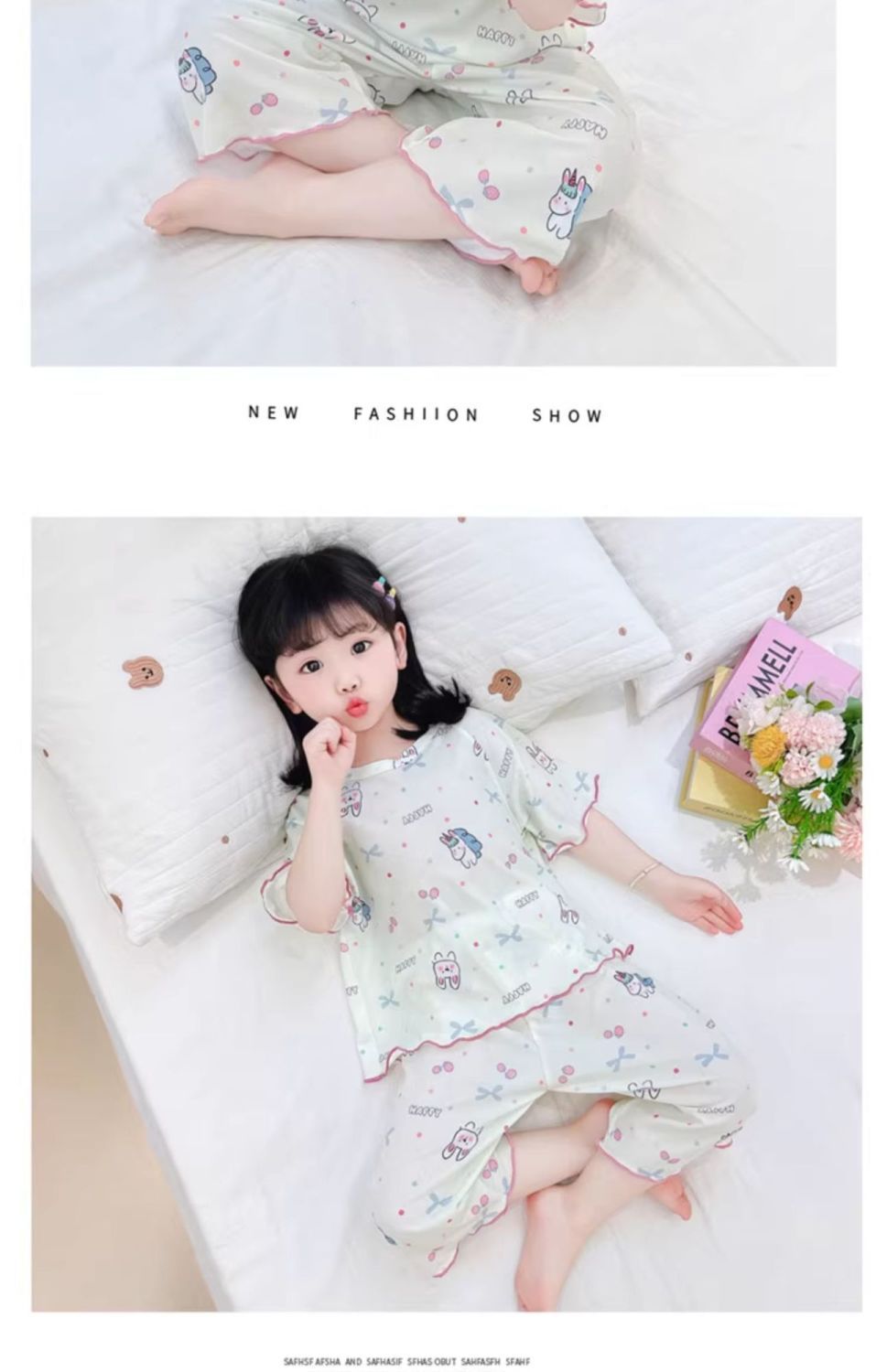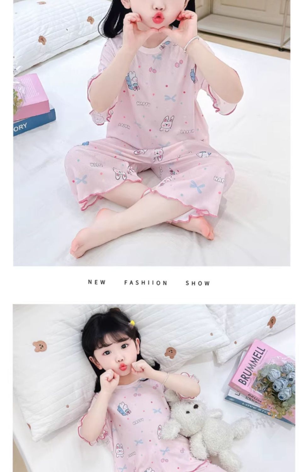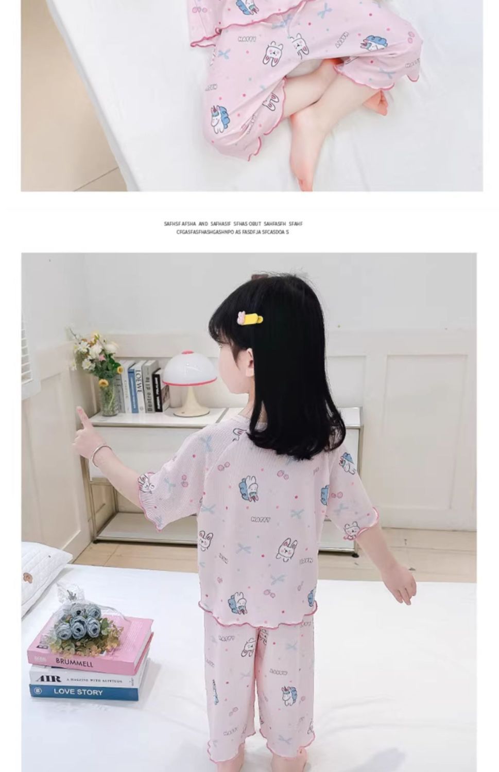 여자 잠옷 여름 정장 얇은 7 점 아기 반팔 새로운 에어컨 옷 어린이 얼음 실크 여자 가정 옷스토어 가기