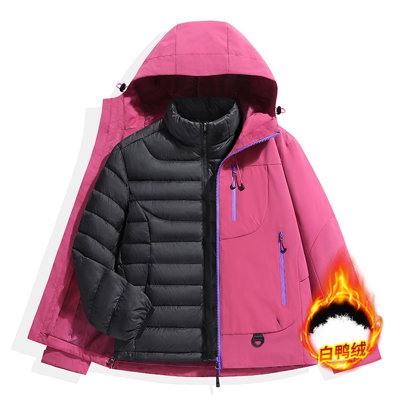 여성용 마운틴 재킷, 남성용 쓰리인원 와플 라이너 방풍 및 방수 기능성 재킷, 아웃도어 후드 등산 재킷스토어 가기