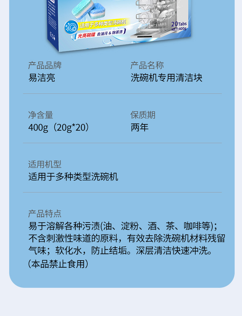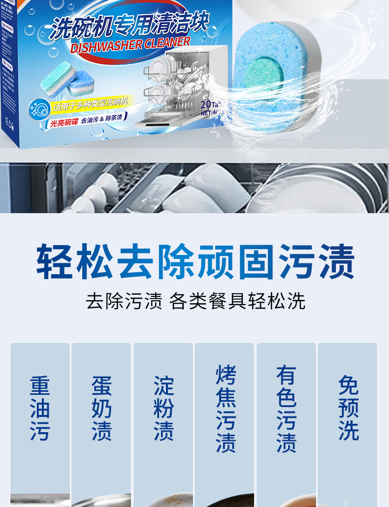 Yijie 브라이트 식기 세척 블록 식기 세척 블록 세척 블록 기름 제거 및 광택 식기 고체 세척제 20 블록 제조 업체 도매 국경 간스토어 가기