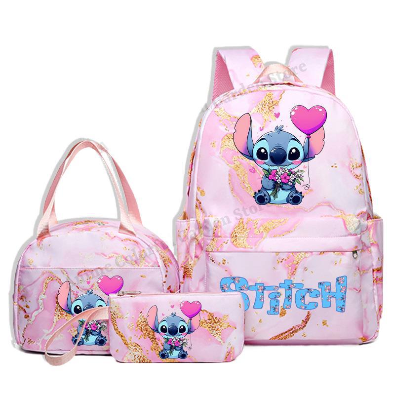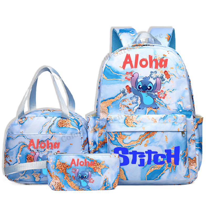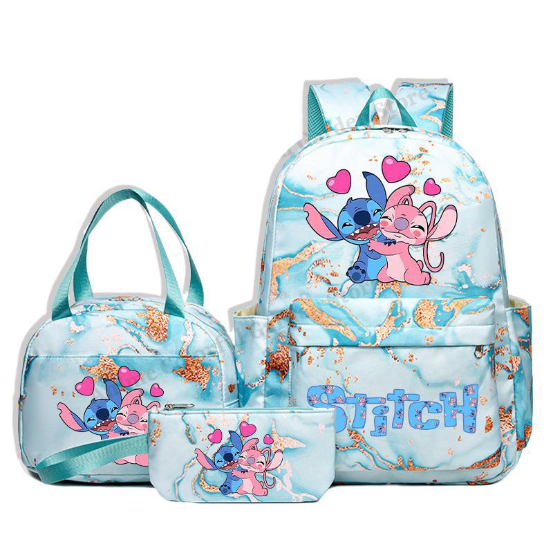 스티치 만화 패턴 배낭 점심 가방 연필 상자 세트 초등학교 가방 남성과 여성 패션 배낭스토어 가기