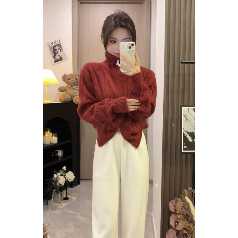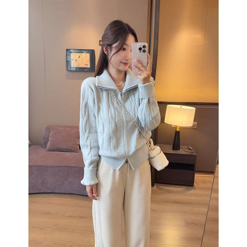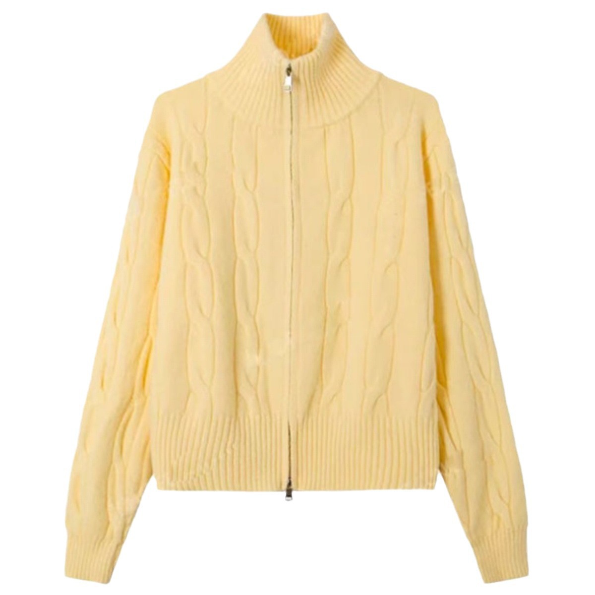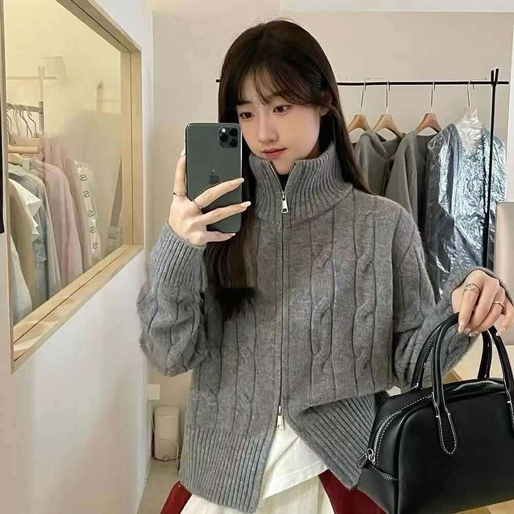 가을 겨울 여성을 위한 한국 복고풍 케이블 스탠드 칼라 스웨터 재킷, 연령 감소 시크 니트 가디건, 대학 스타일 가디건스토어 가기