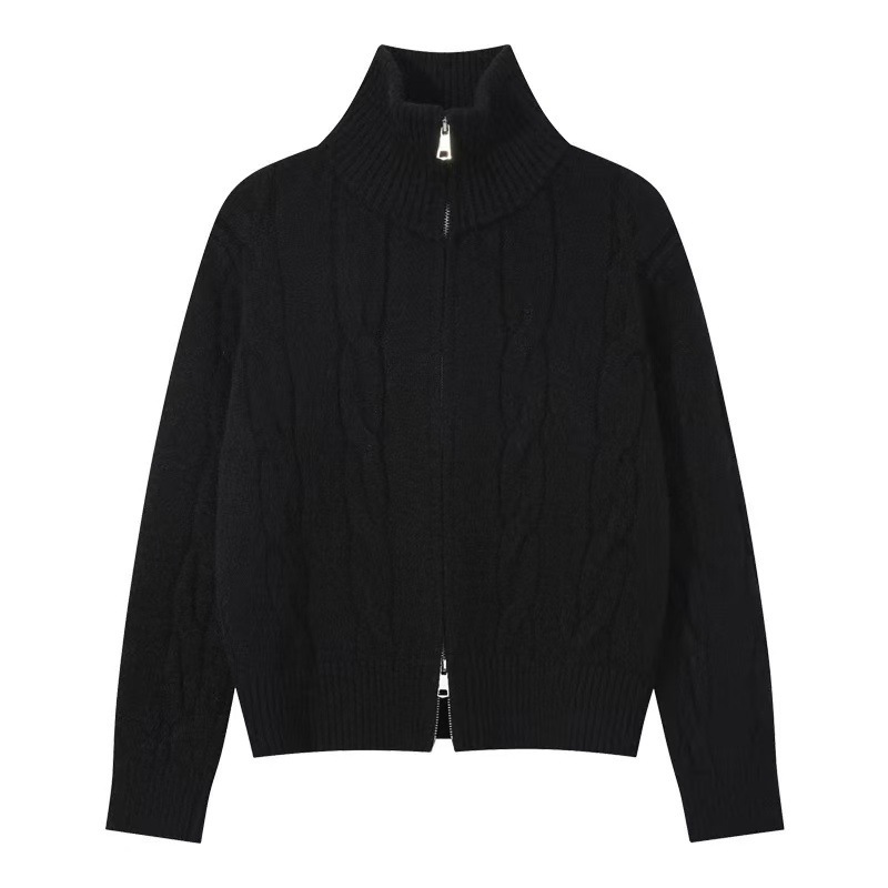 가을 겨울 여성을 위한 한국 복고풍 케이블 스탠드 칼라 스웨터 재킷, 연령 감소 시크 니트 가디건, 대학 스타일 가디건