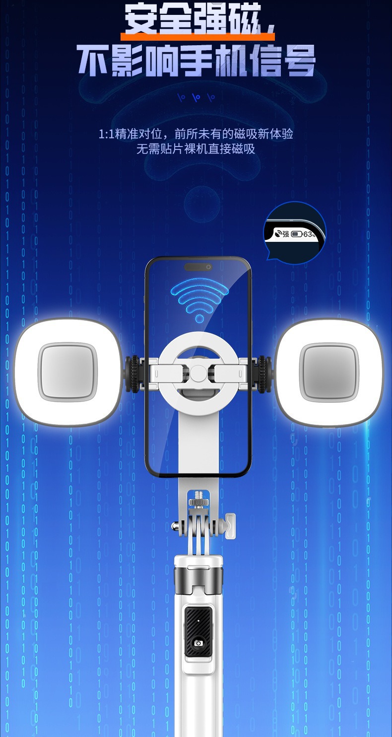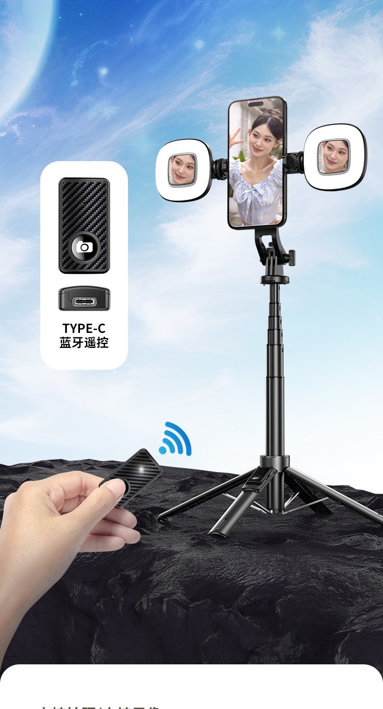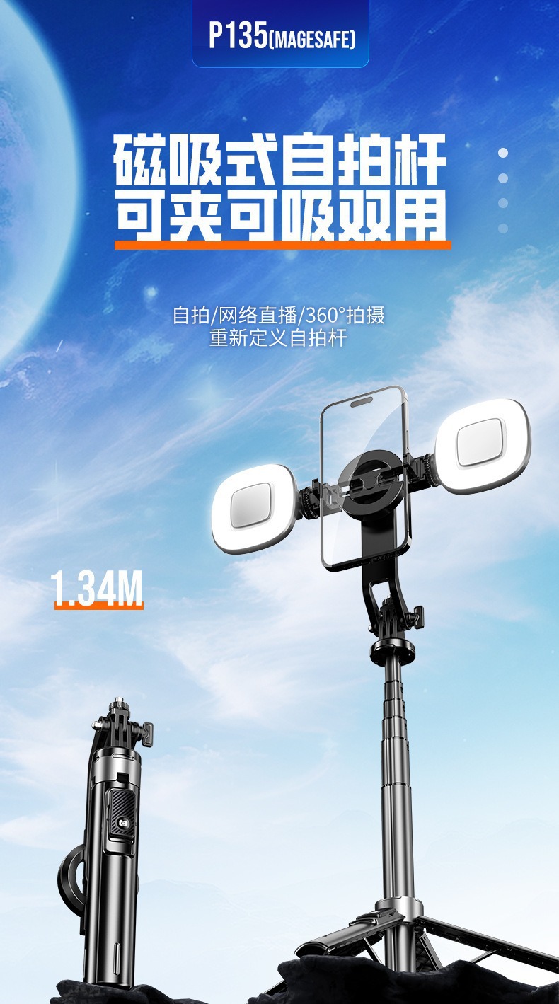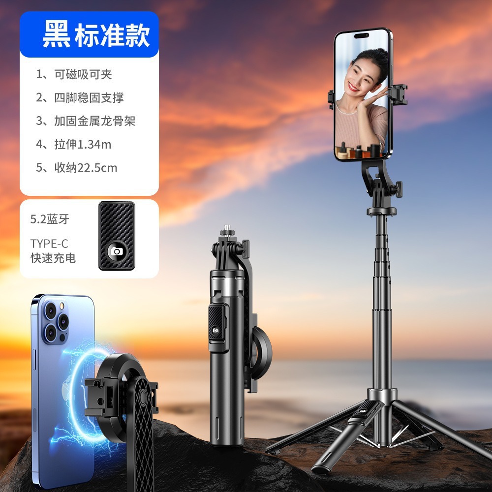 새로운 P135 자기 셀카 스틱 휴대 전화 범용 라이브 방송 손떨림 방지 개폐식 바닥 스탠드 블루투스 셀카 스탠드