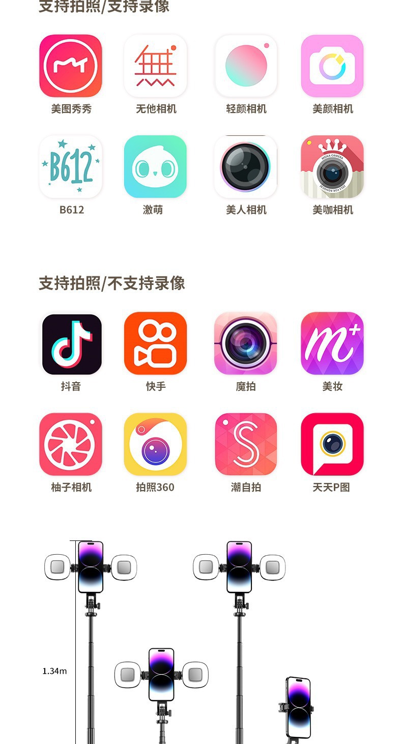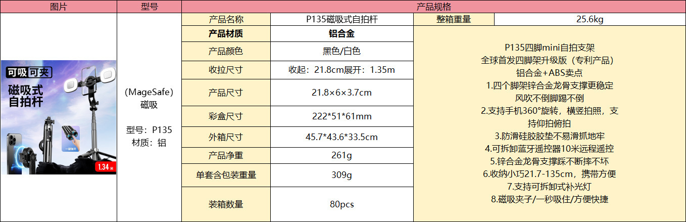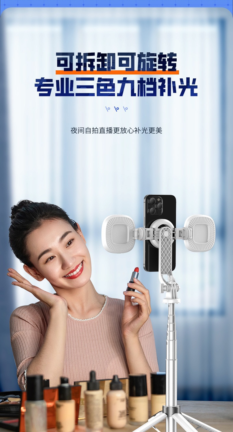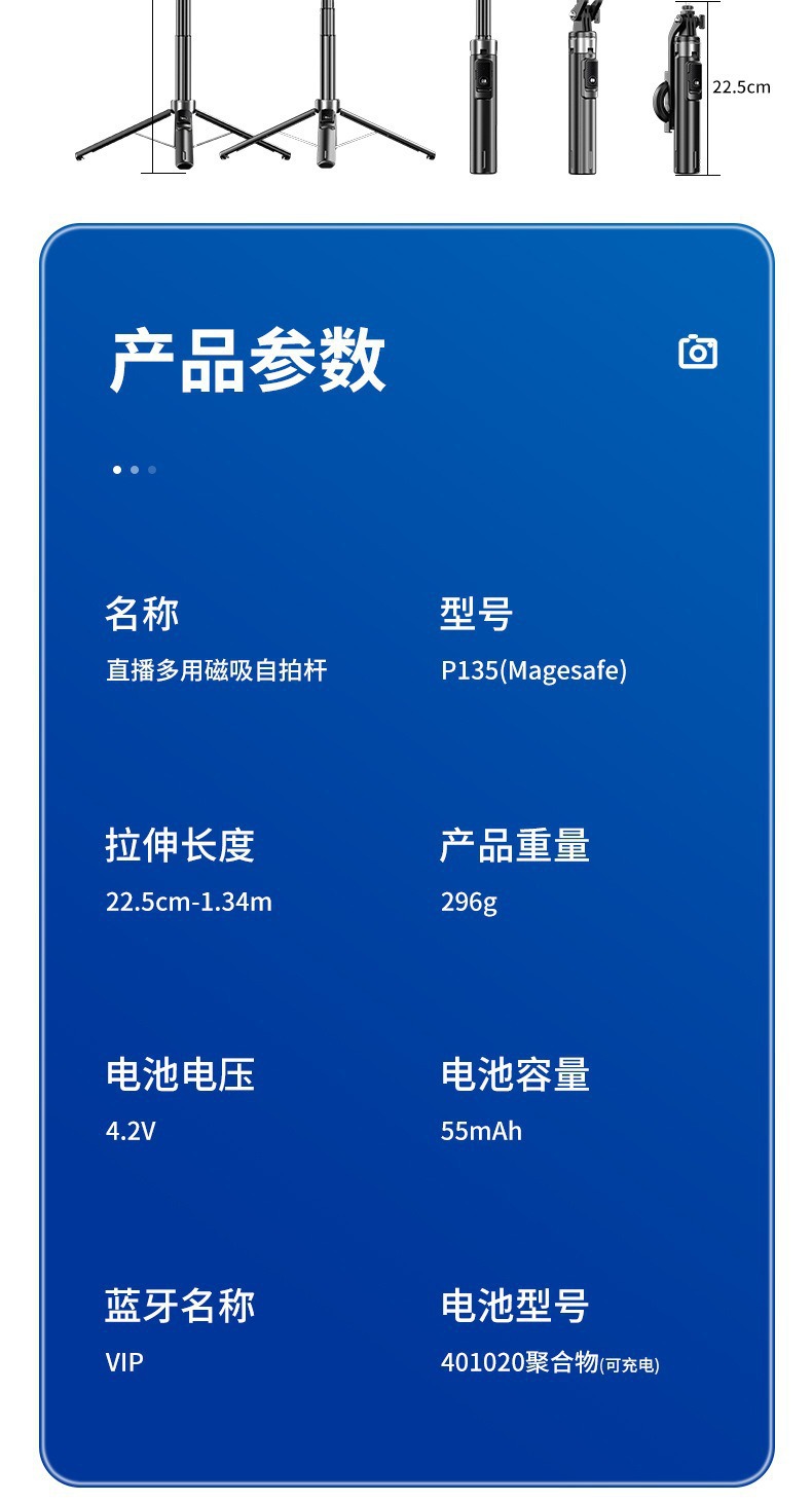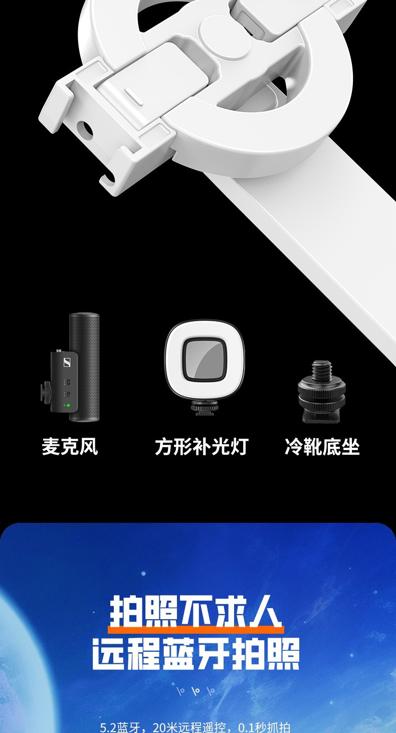 새로운 P135 자기 셀카 스틱 휴대 전화 범용 라이브 방송 손떨림 방지 개폐식 바닥 스탠드 블루투스 셀카 스탠드