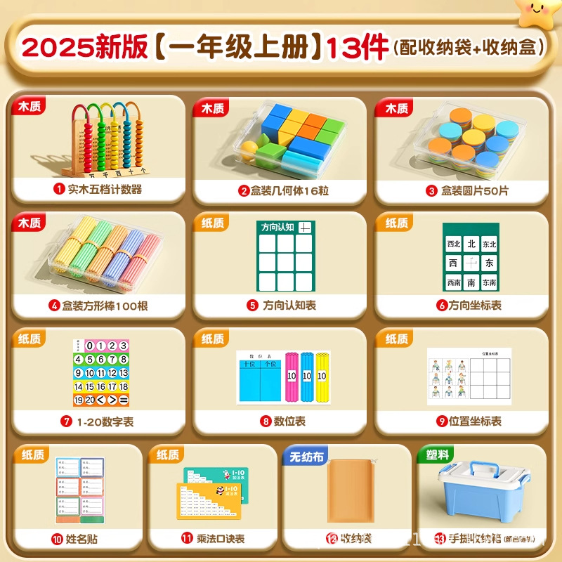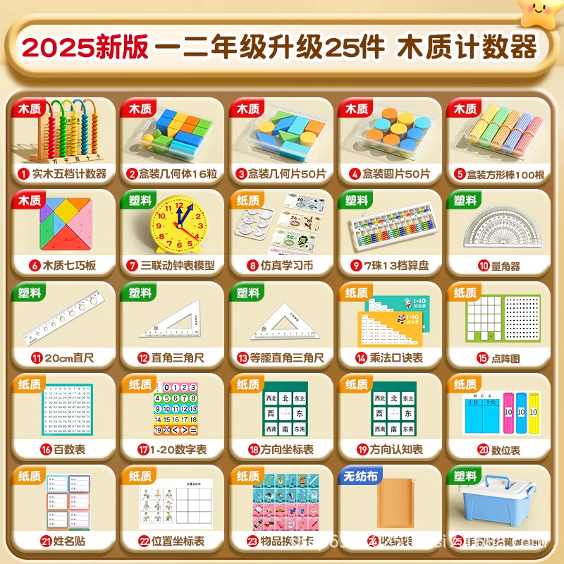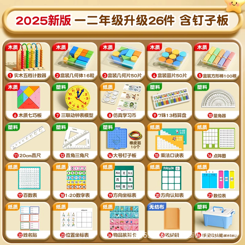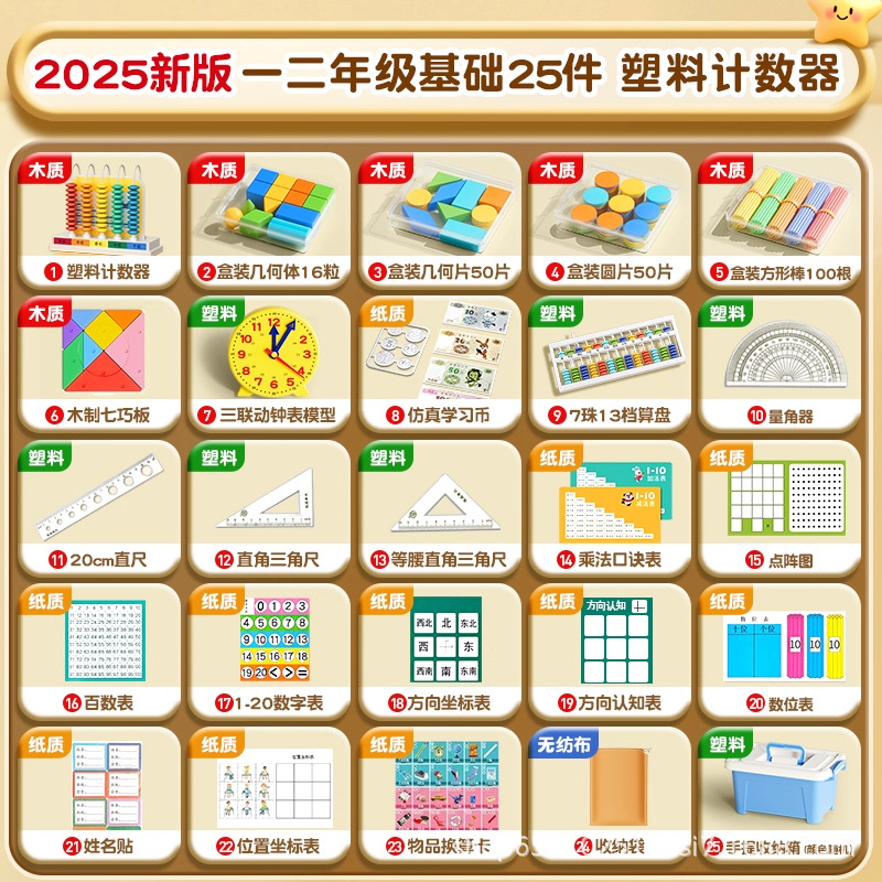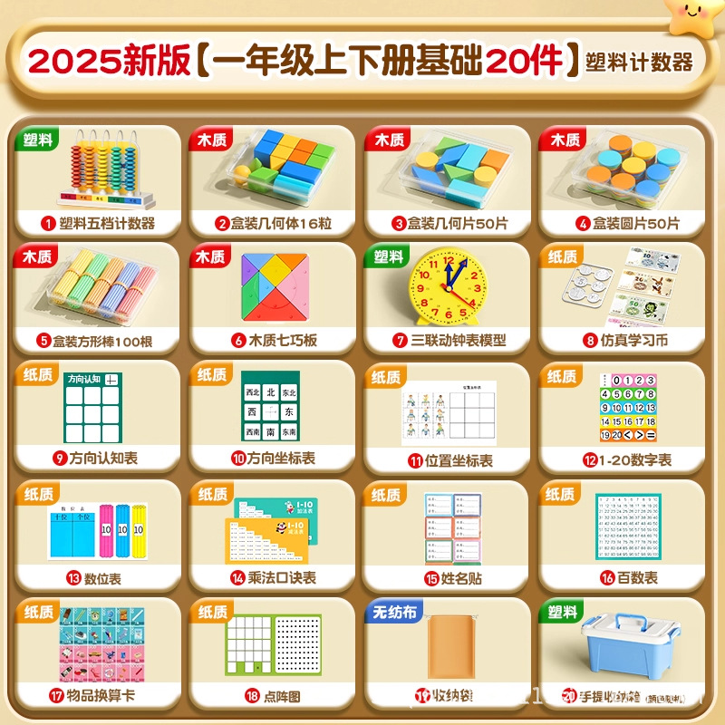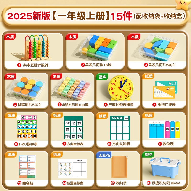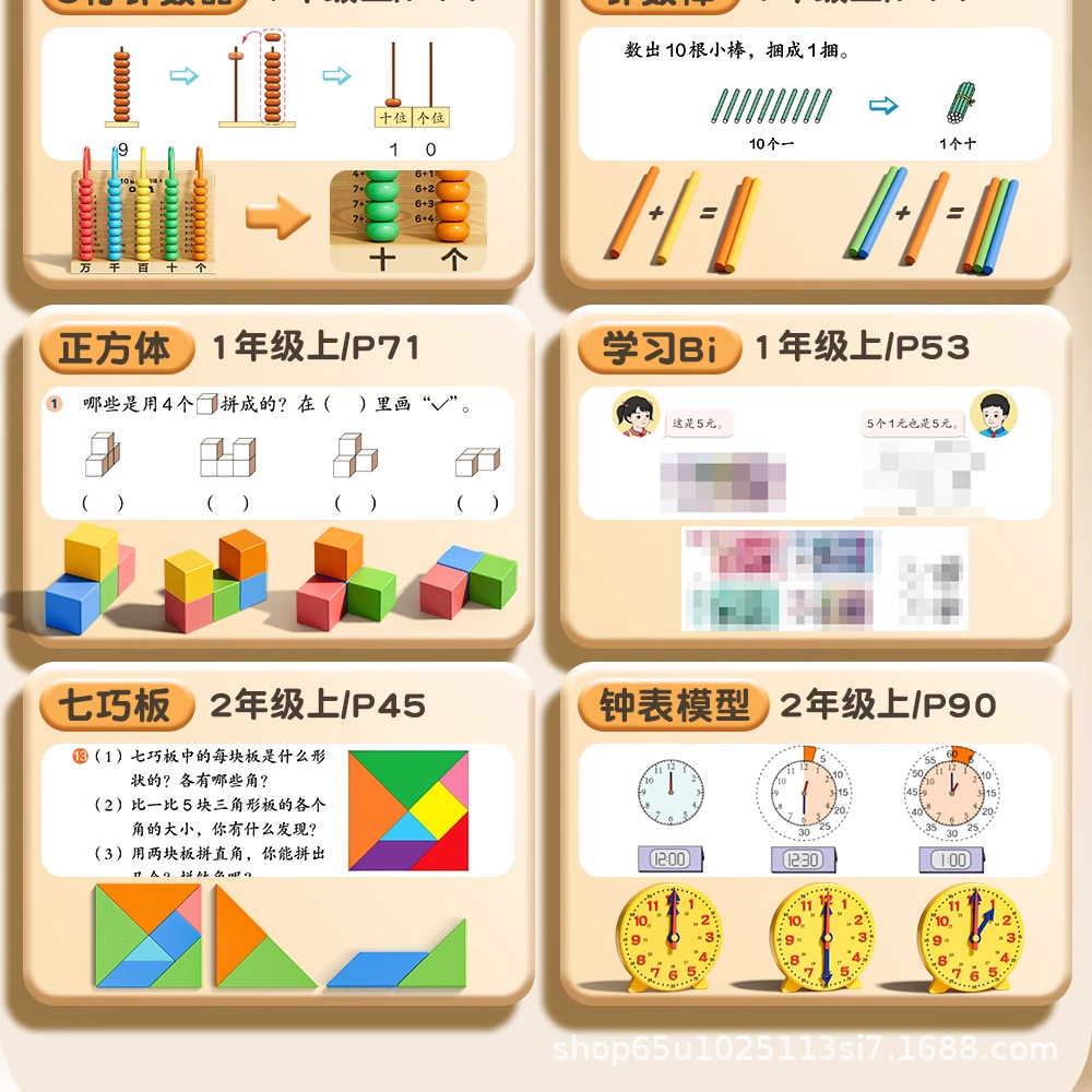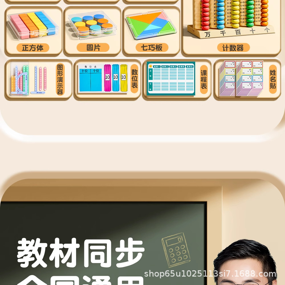 1학년 수학 교육 보조 도구, 초등학교 용품 전체 세트, tangram 카운터, 시계 카운팅 스틱, 학습 보조 도구 전체 세트 도매스토어 가기