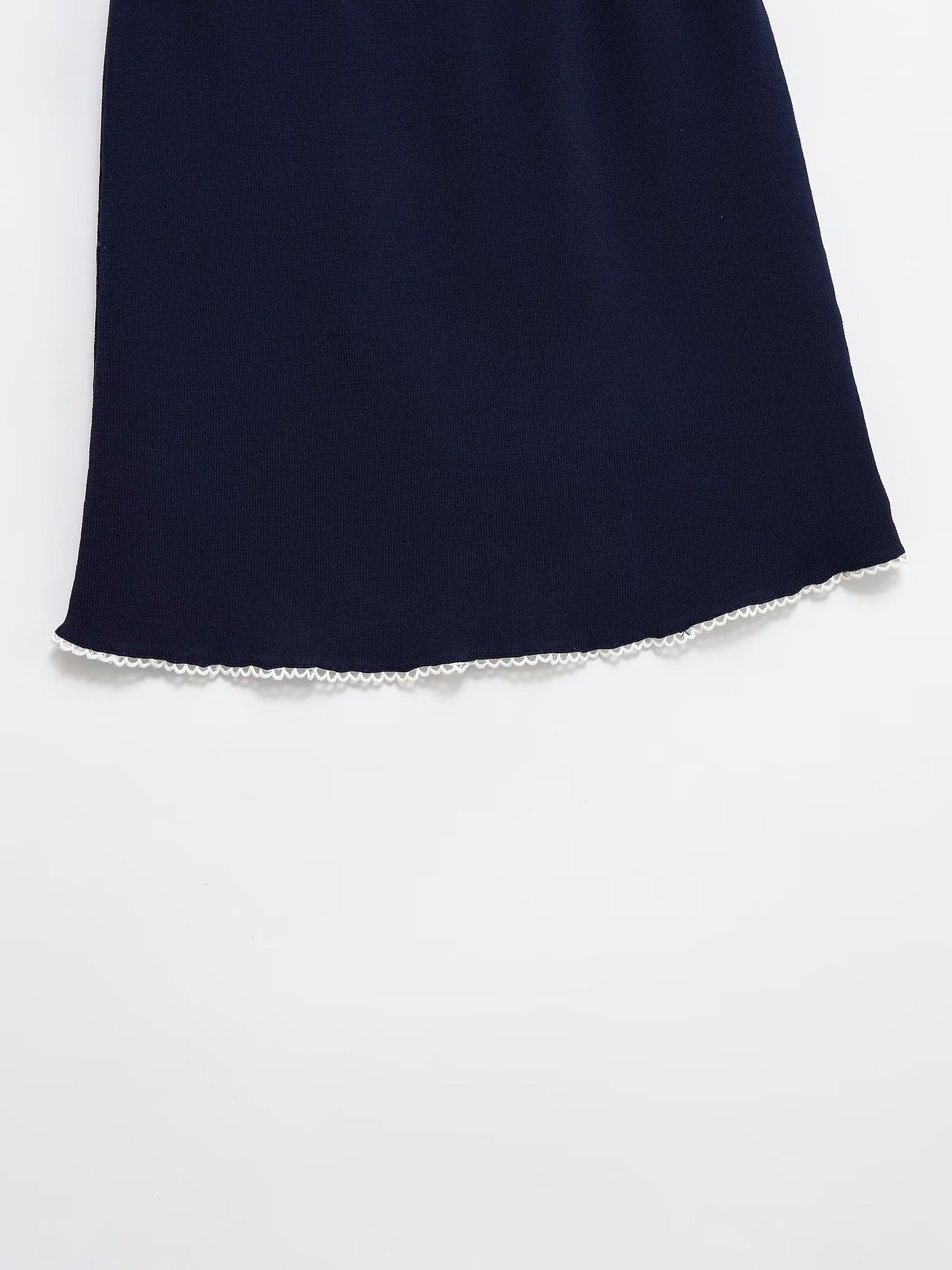 유럽과 미국 여성 의류 도매 2025 여름 새로운 높은 허리 슬리밍 네이비 블루 스커트 여성 미니 힙 스커트