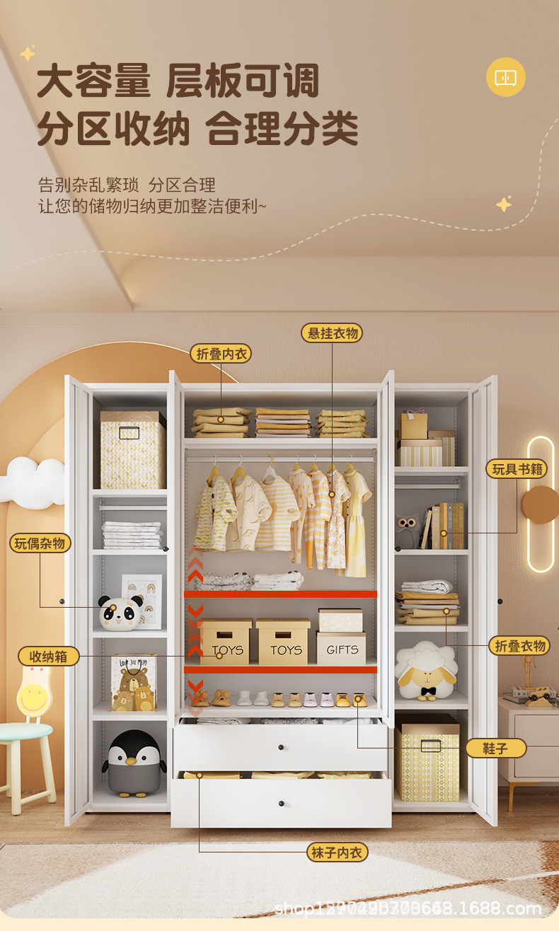 북유럽 철제 옷장 간단한 조립 사물함 침실 보관 캐비닛 임대 주택 두꺼운 어린이 방 바닥 옷장