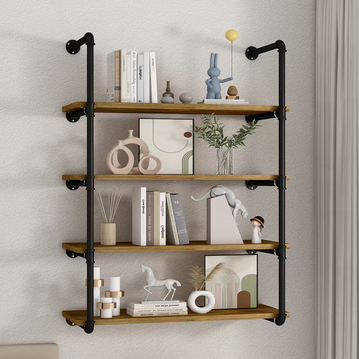 단철 수도관 보관함 거실 벽 크리 에이 티브 벽걸이 형 보관함 복고풍 단단한 나무 파티션 교수형 바구니 보관 책장