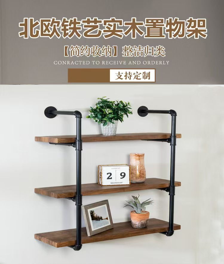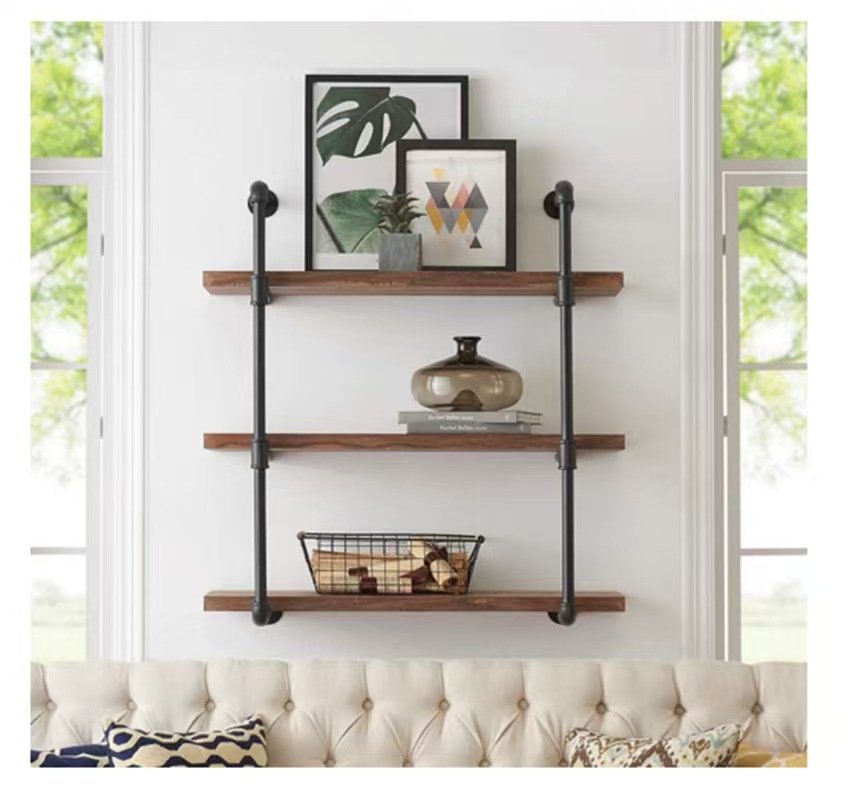 단철 수도관 보관함 거실 벽 크리 에이 티브 벽걸이 형 보관함 복고풍 단단한 나무 파티션 교수형 바구니 보관 책장스토어 가기