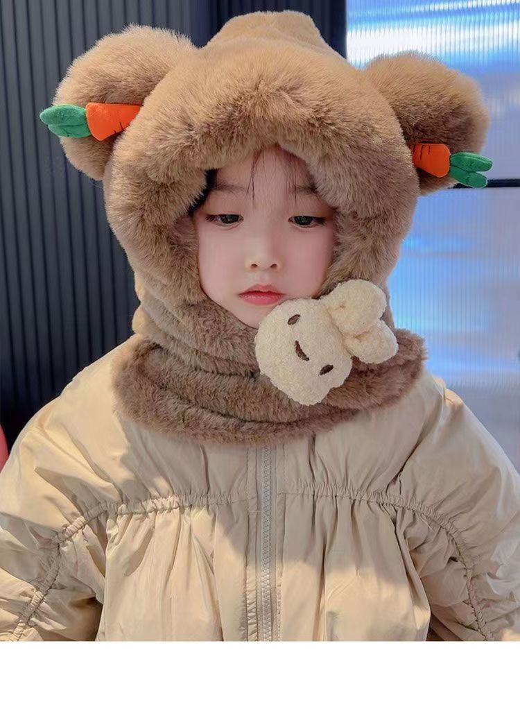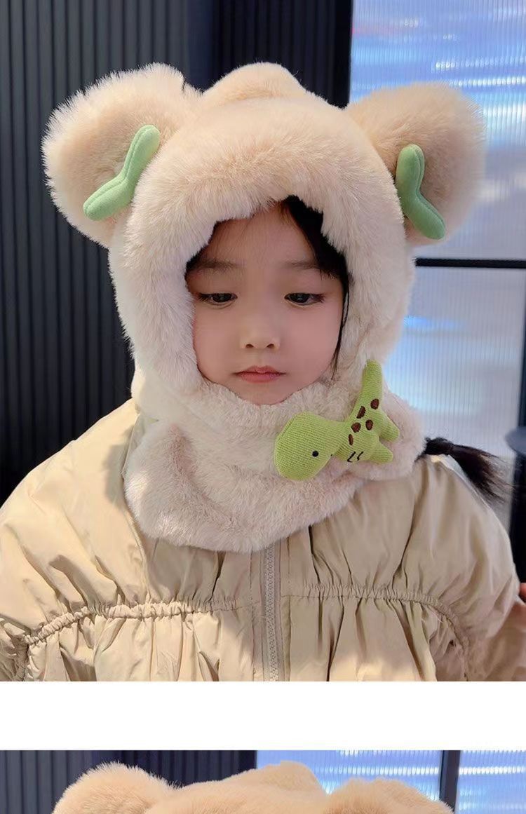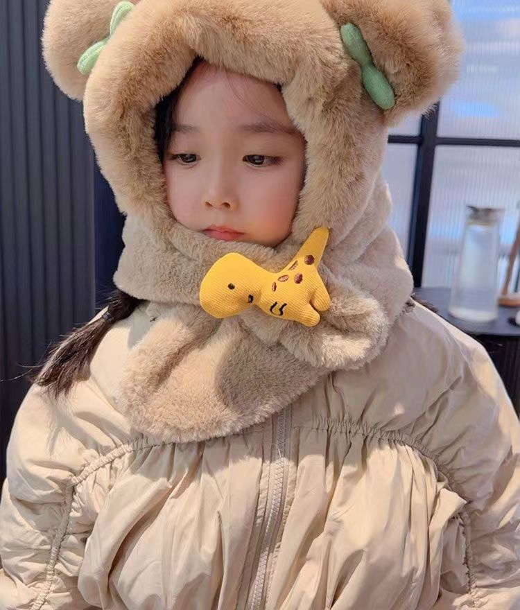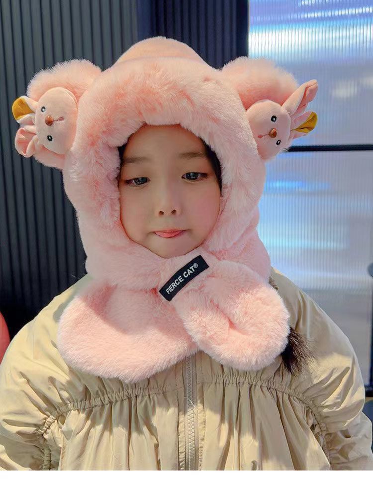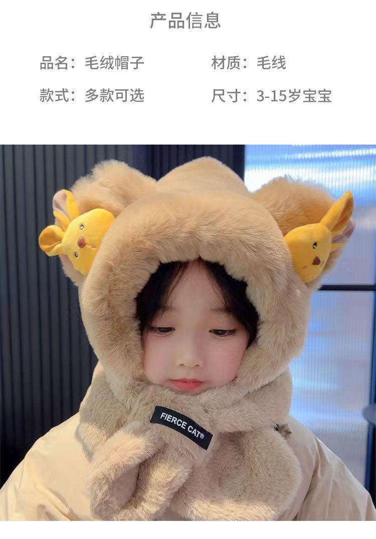 아기 겨울 모자와 스카프 일체형 플러스 벨벳 따뜻한 어린이 방풍 귀 보호 모자 소년과 소녀 두꺼운 플러시 모자