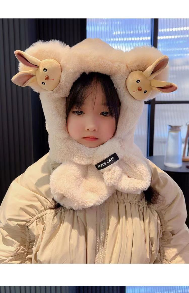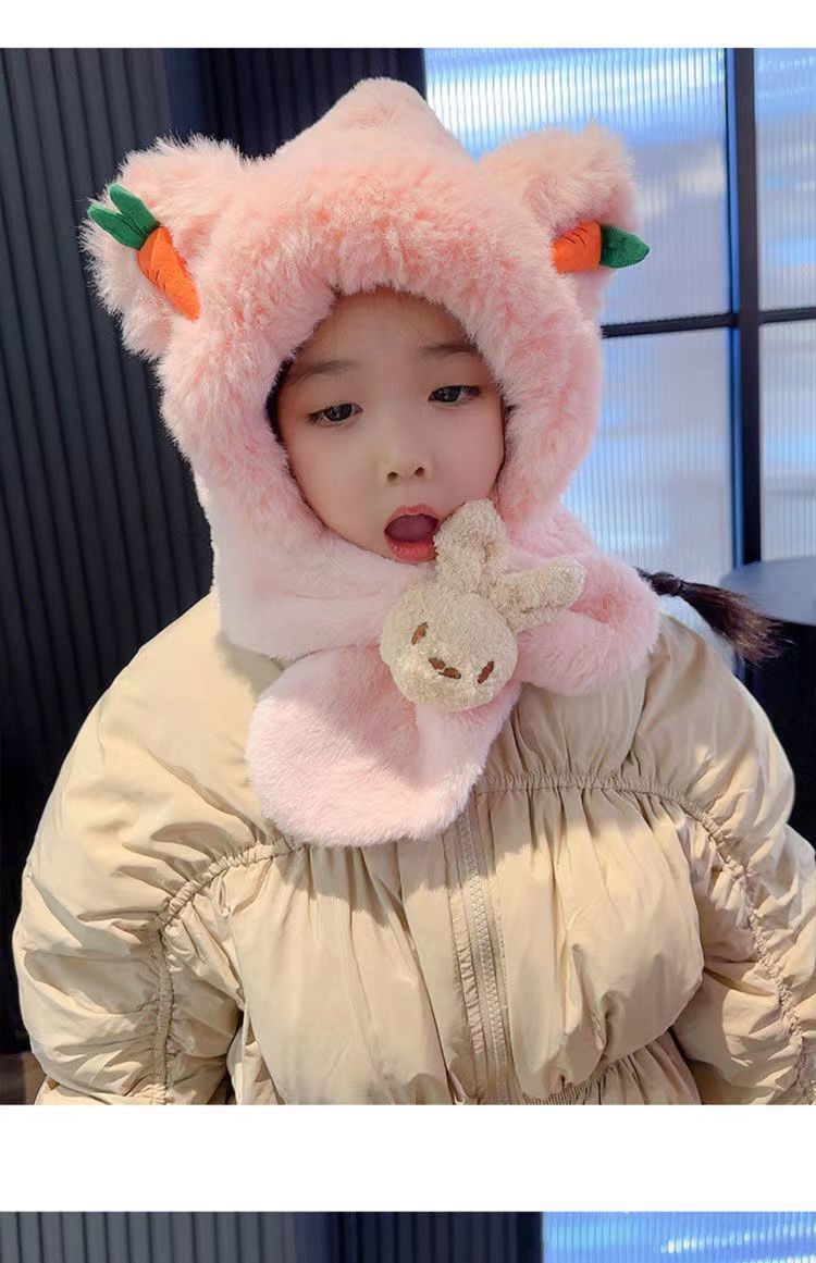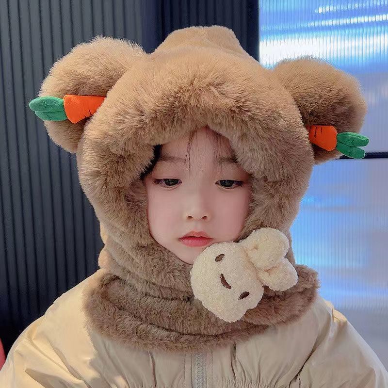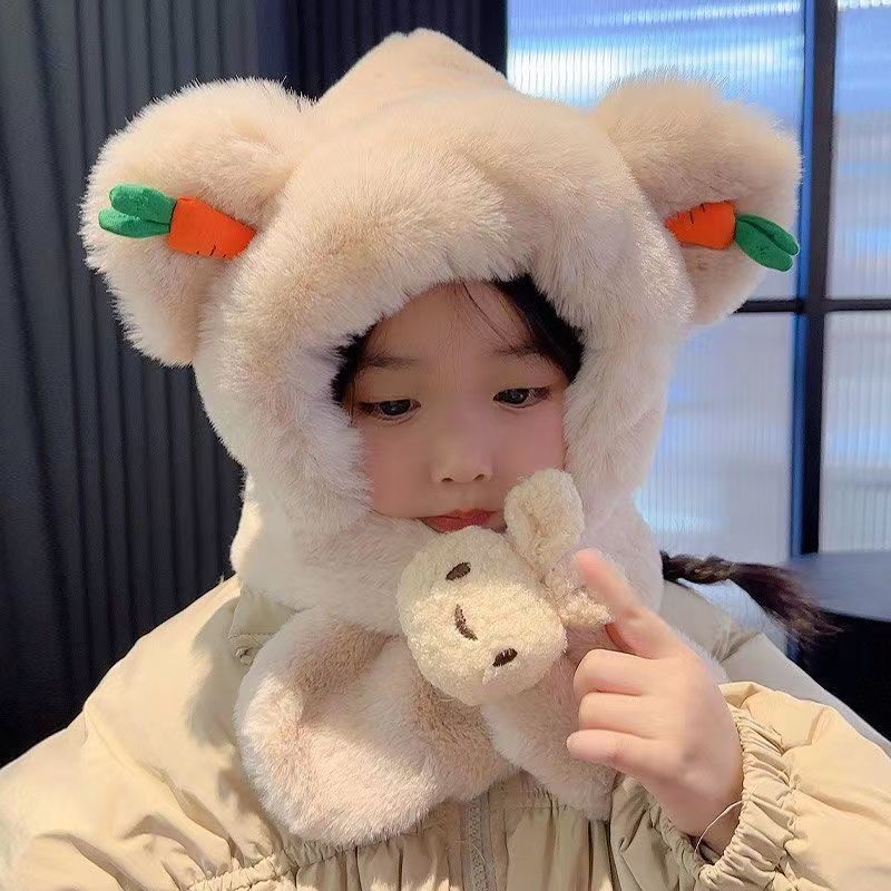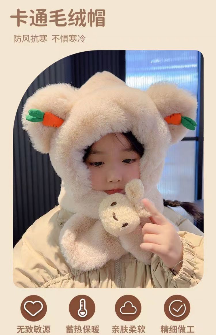 아기 겨울 모자와 스카프 일체형 플러스 벨벳 따뜻한 어린이 방풍 귀 보호 모자 소년과 소녀 두꺼운 플러시 모자