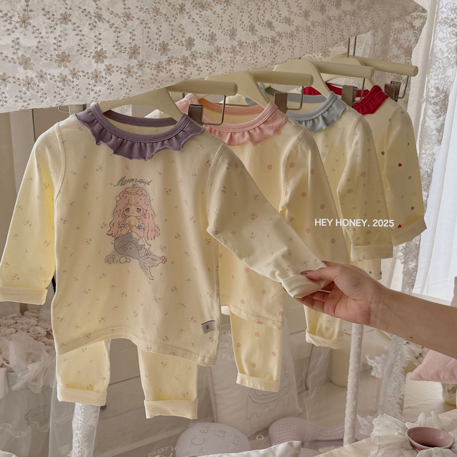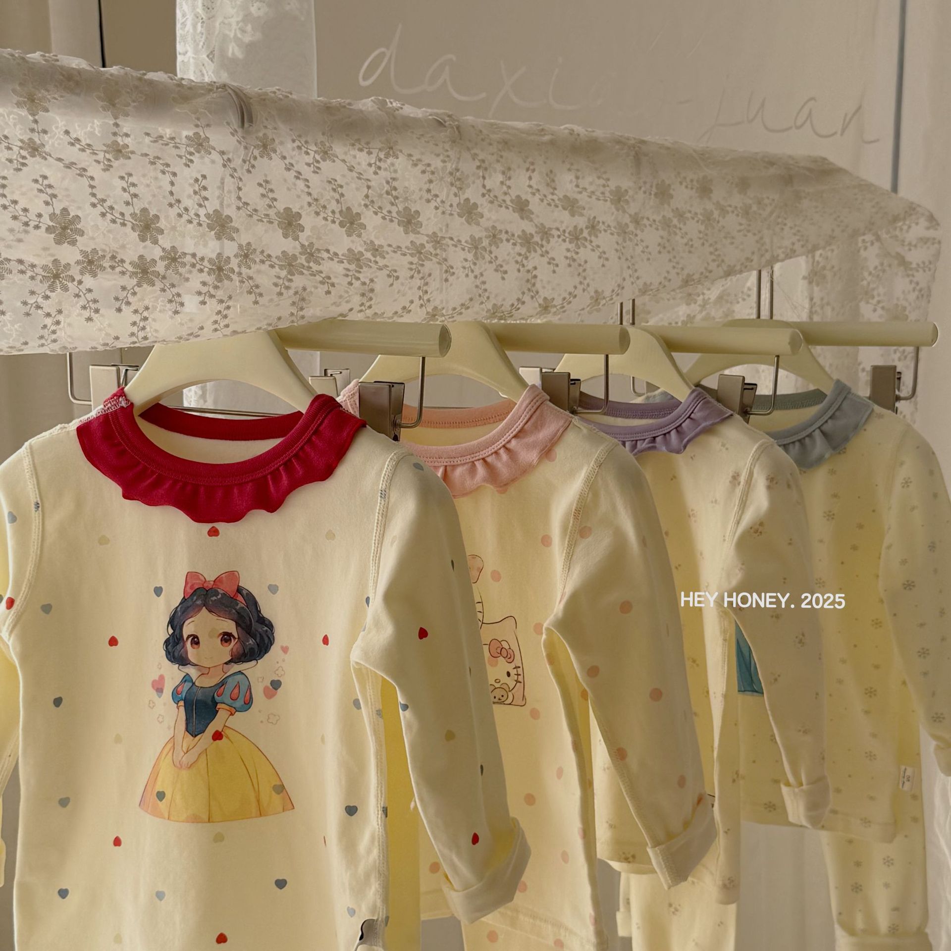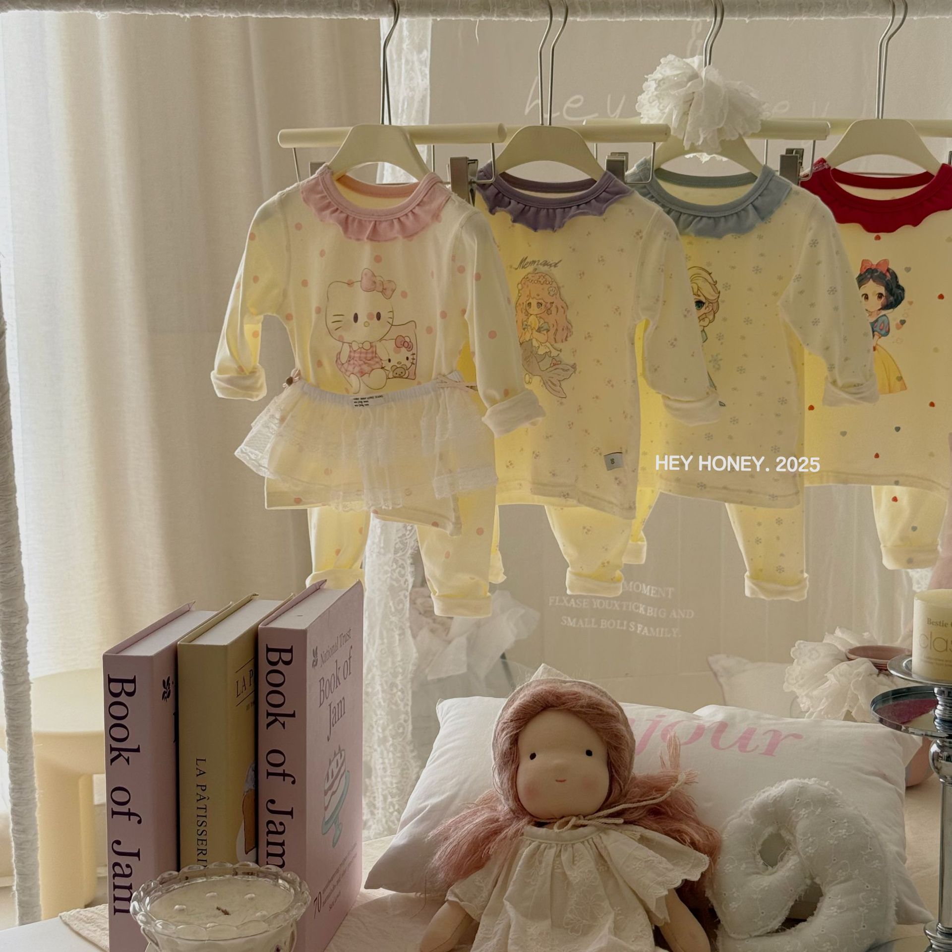 Hey Sweetheart Heyhoney25 라이크라 코튼 프린세스 걸스 가을 속옷 프린트 홈웨어 파자마 투피스 세트