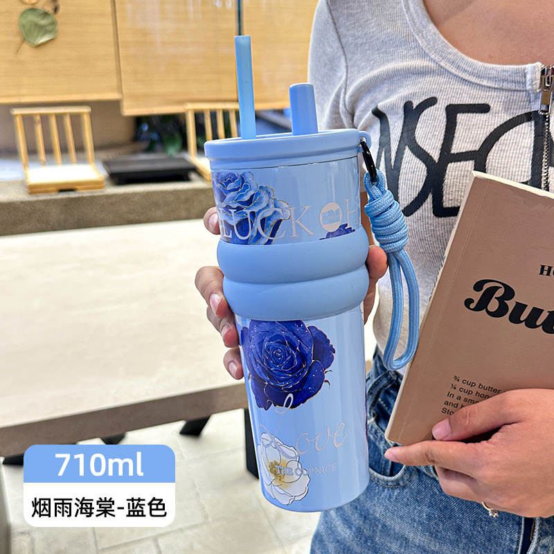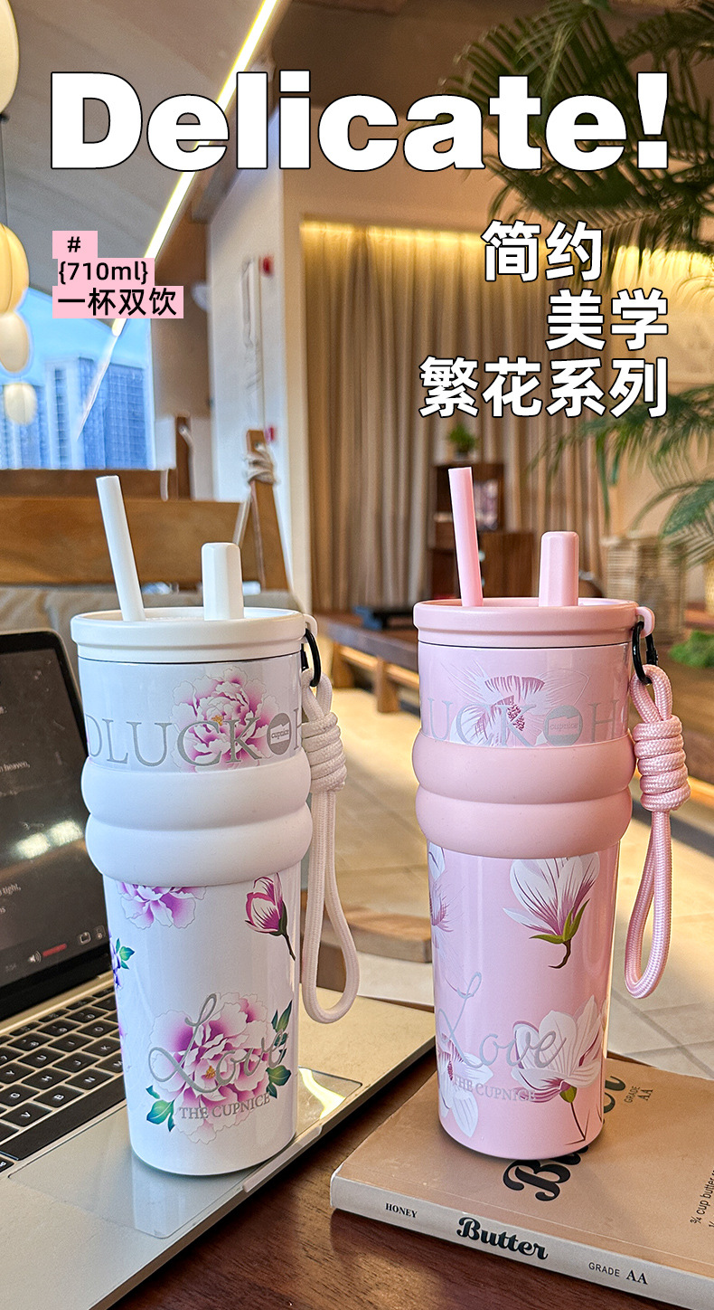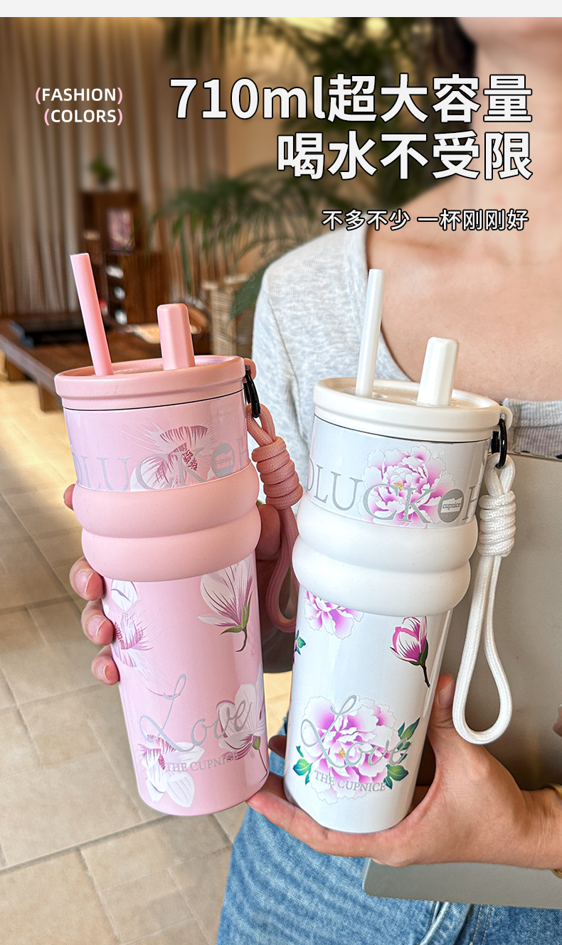 새로운 316 스테인레스 스틸 절연 컵 야외 휴대용 대용량 커피 컵 고가치 자동차 밀짚 컵 도매