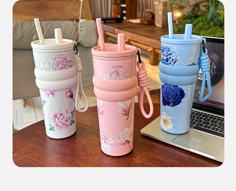새로운 316 스테인레스 스틸 절연 컵 야외 휴대용 대용량 커피 컵 고가치 자동차 밀짚 컵 도매스토어 가기