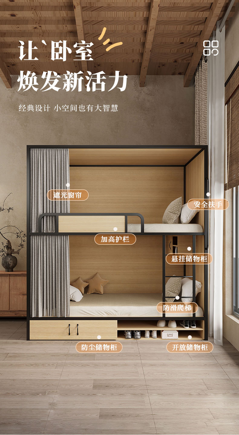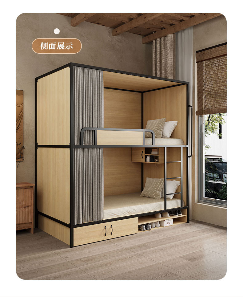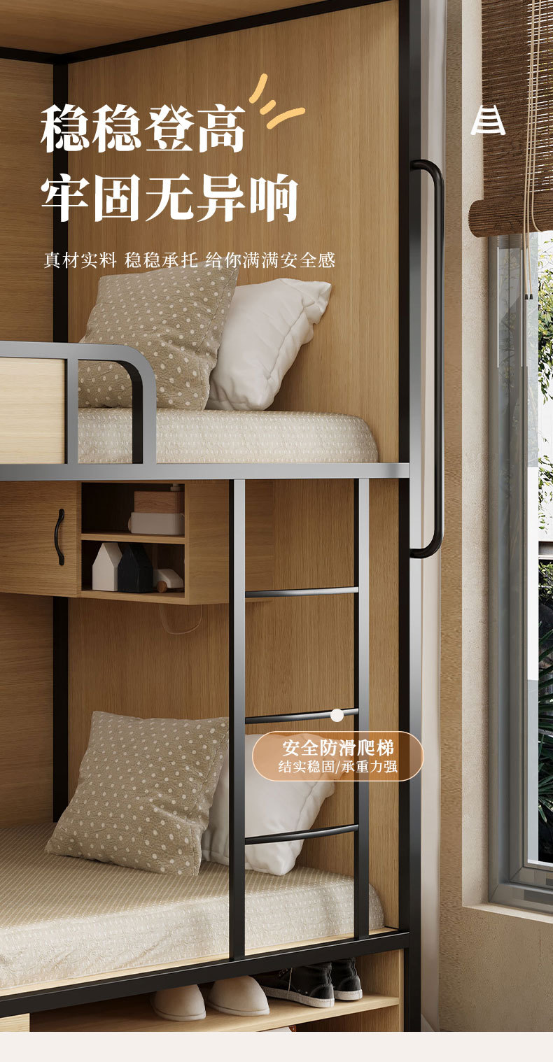 계단이 있는 철제 목재 이층 침대가 있는 대학생 기숙사 이층 침대, 철제 이층 침대, 체인저스 및 B&B, 폭이 동일한 하이 로우 침대