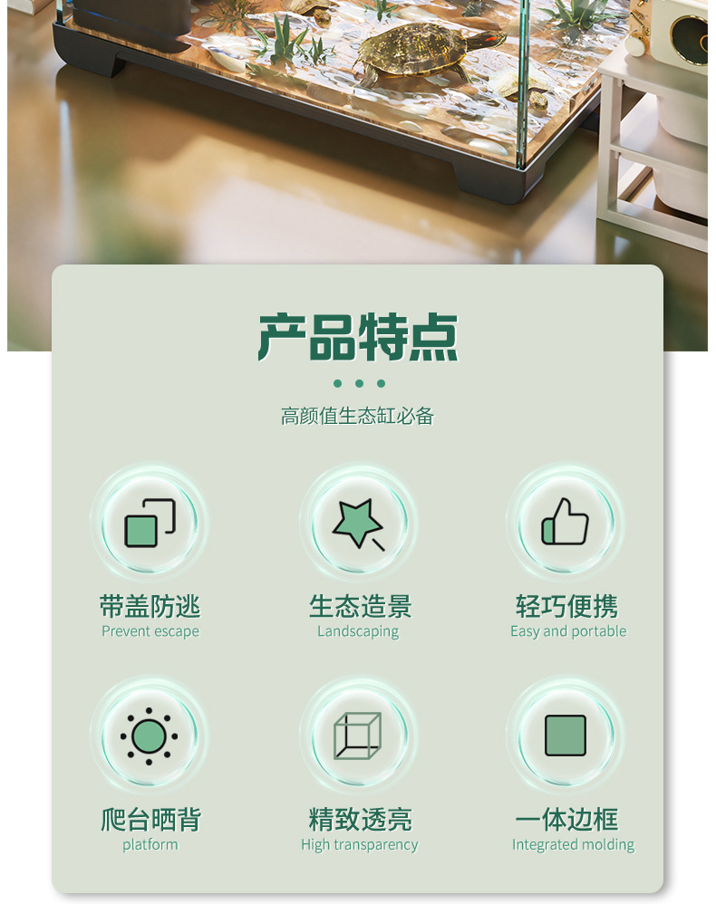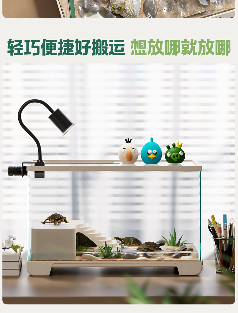 거북이 탱크 작은 거실 2025 새로운 필터 산소 발생기 가정용 조경 전체 세트 생태 데스크탑 거북이 탱크스토어 가기