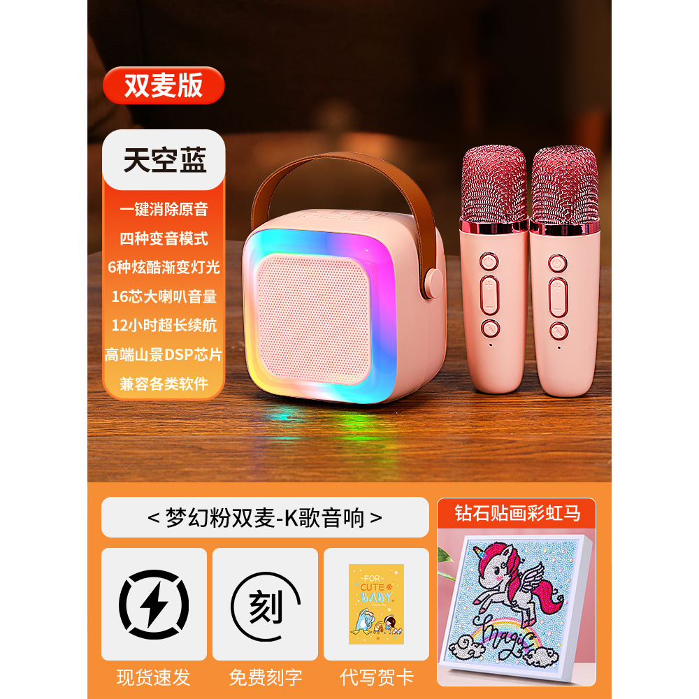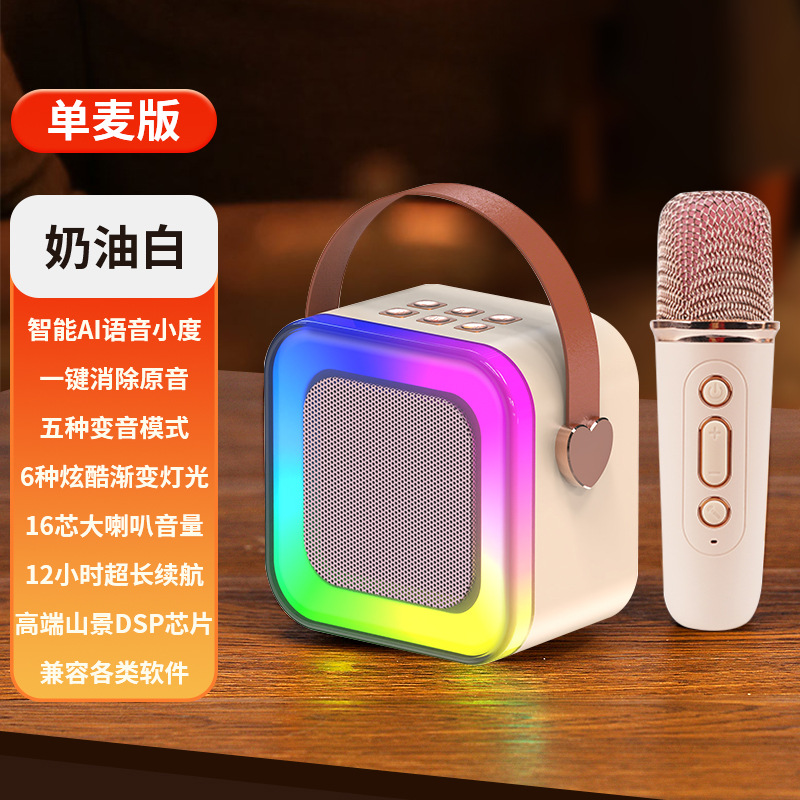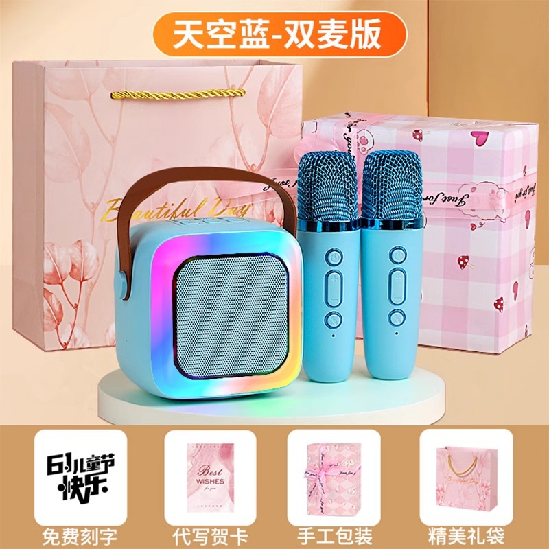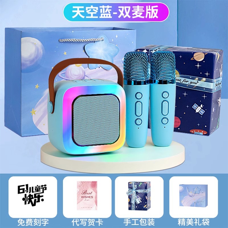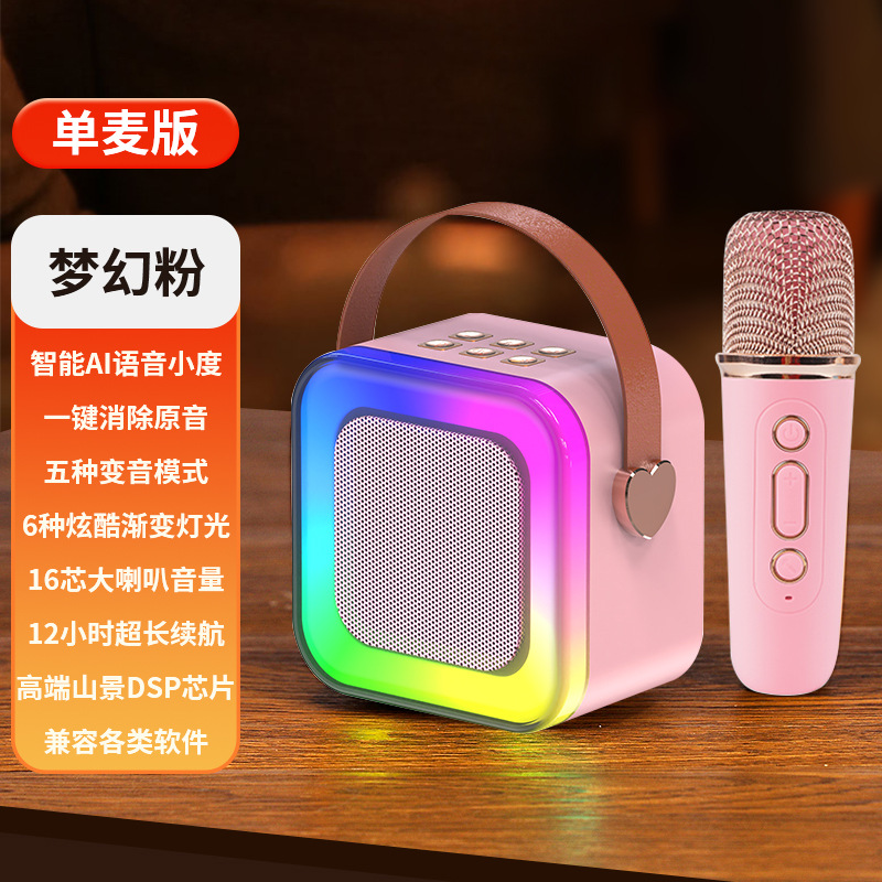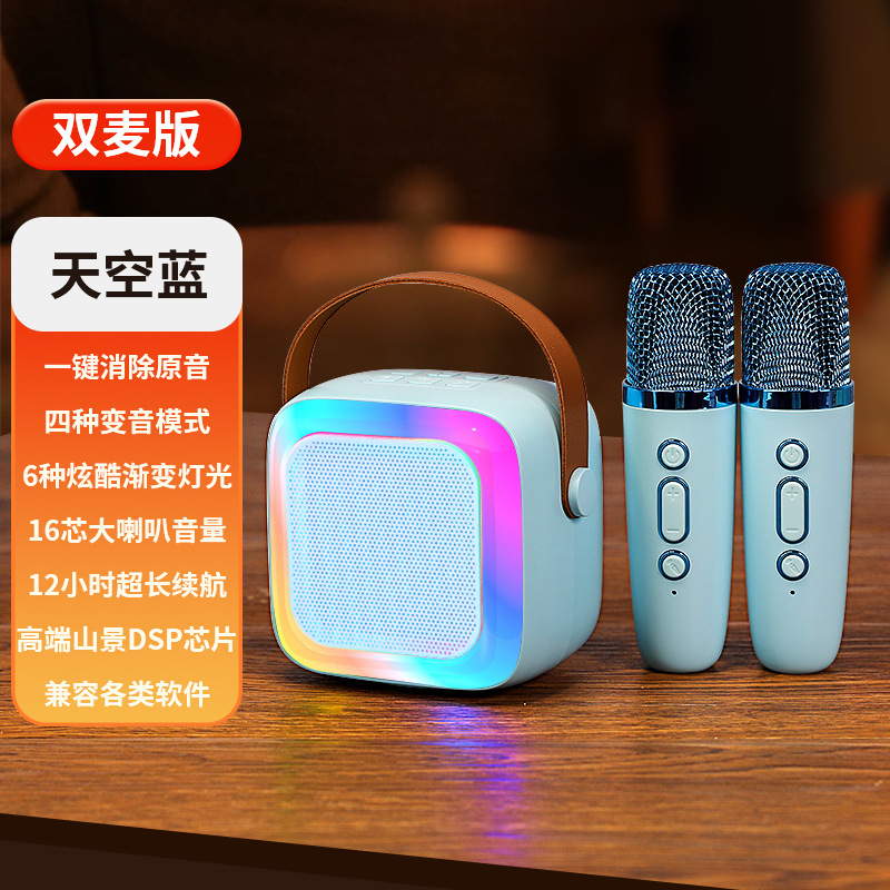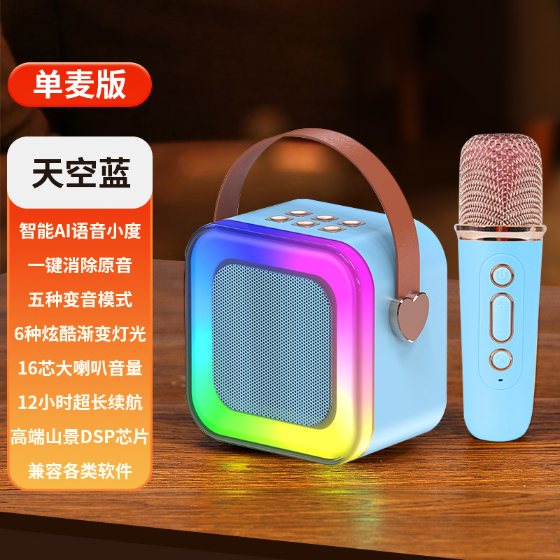• 작은 크기의 하늘색丨단일 마이크 [지능형 AI 음성-360 서라운드 사운드-몇 초 만에 KTV로 변경]