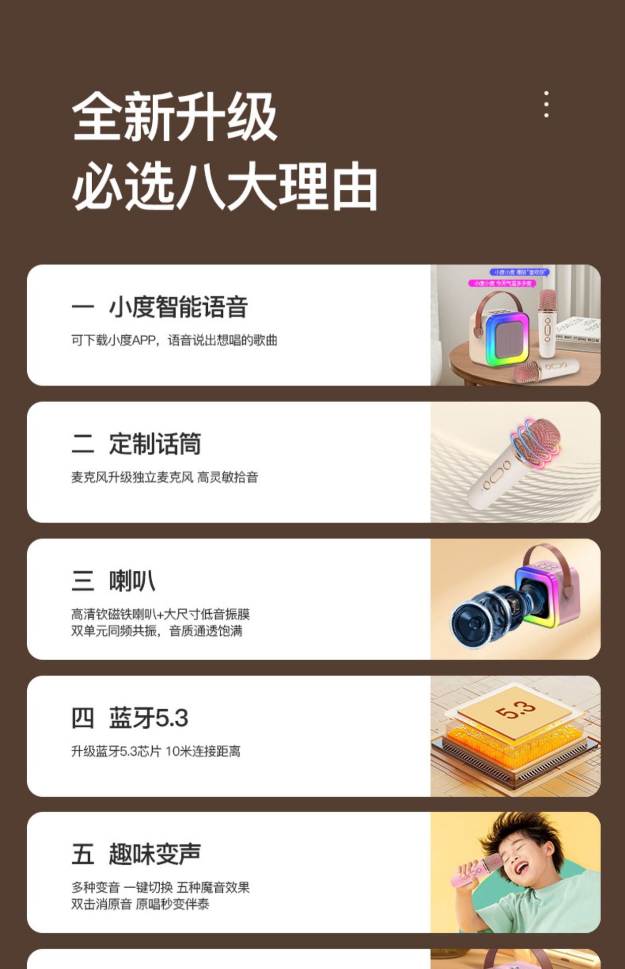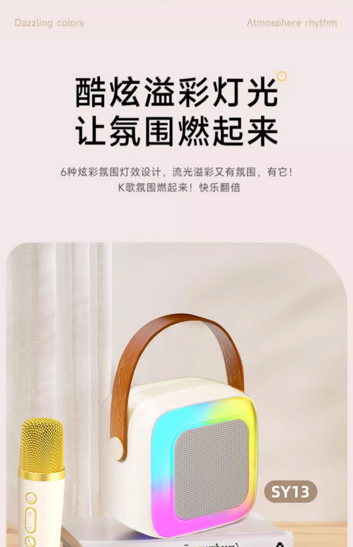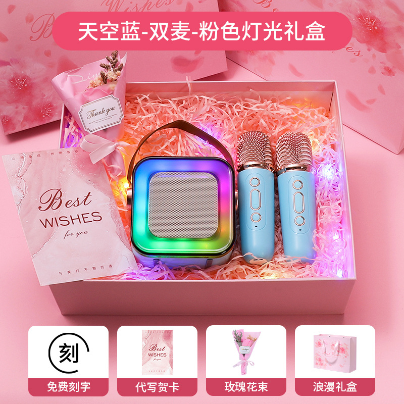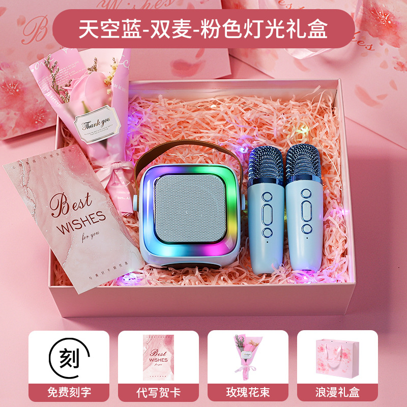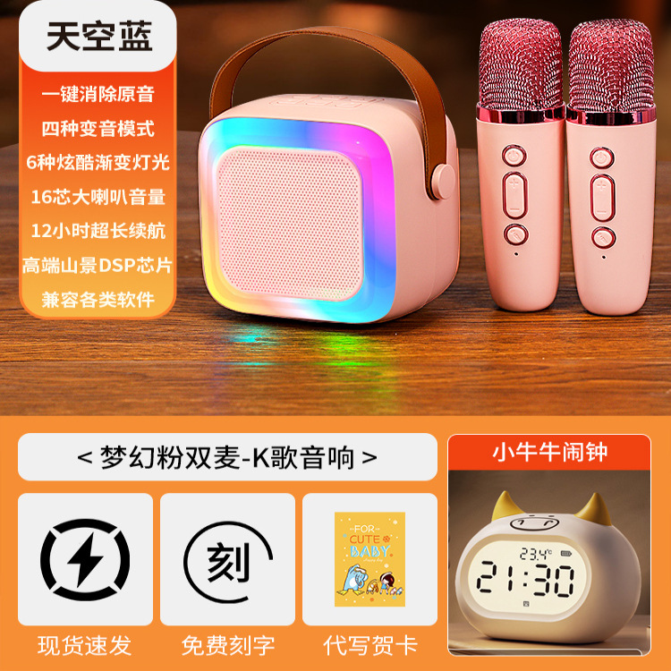 • 작은 크기의 하늘색丨단일 마이크 [지능형 AI 음성-360 서라운드 사운드-몇 초 만에 KTV로 변경]
