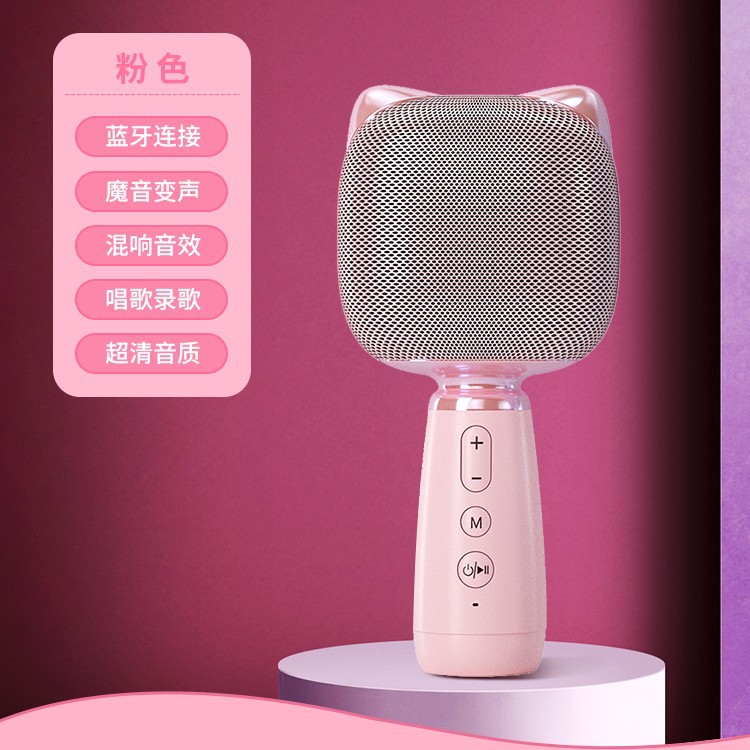 • 키튼 노래방 마이크 [핑크] 듀얼 스피커 스테레오 + 매직 보이스 체인징 + 울트라 클리어 음질