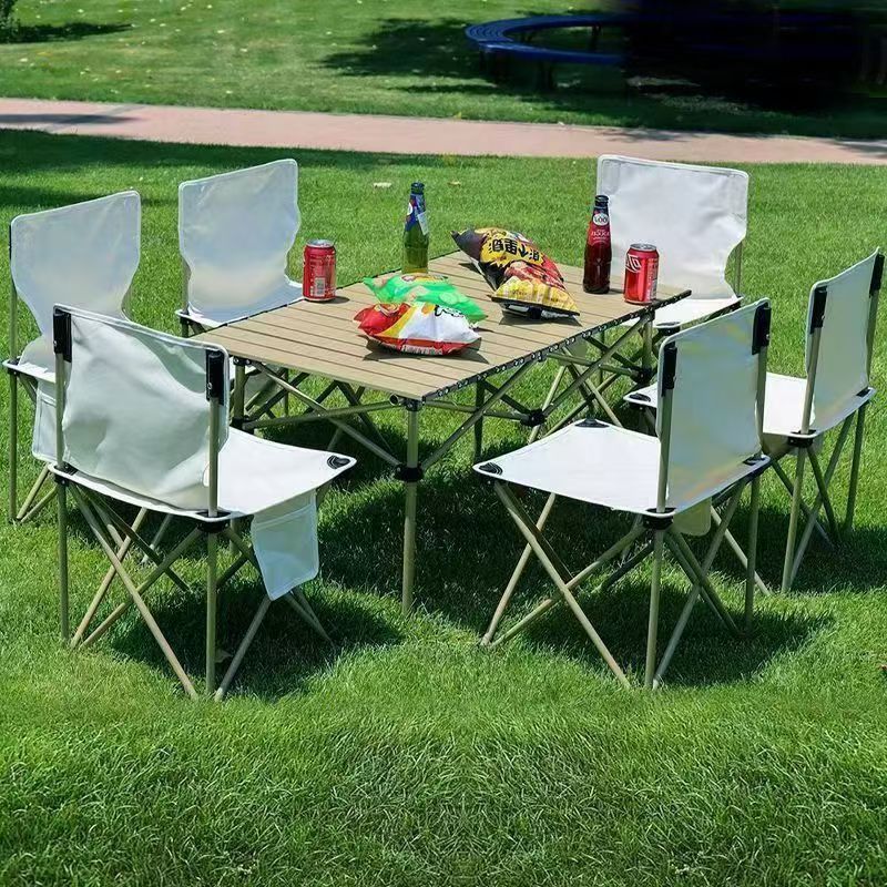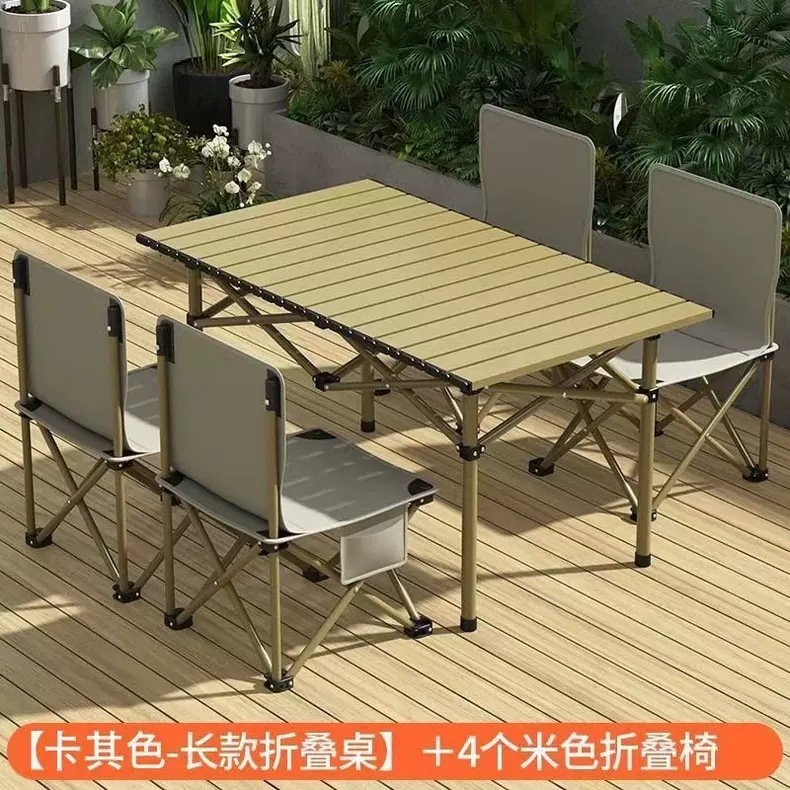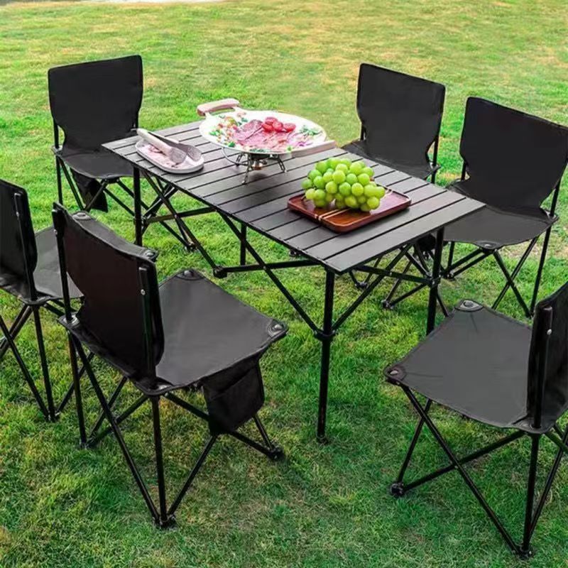 도매 야외 접이식 테이블 휴대용 계란 롤 테이블 탄소강 바베큐 테이블 캠핑 식탁 세트 Kermit 테이블과 의자