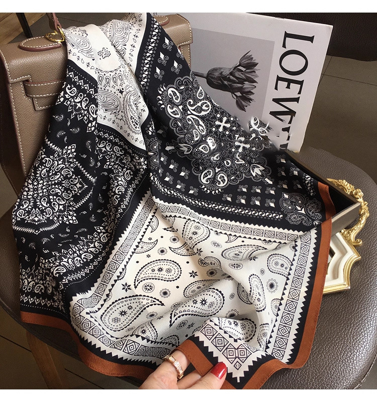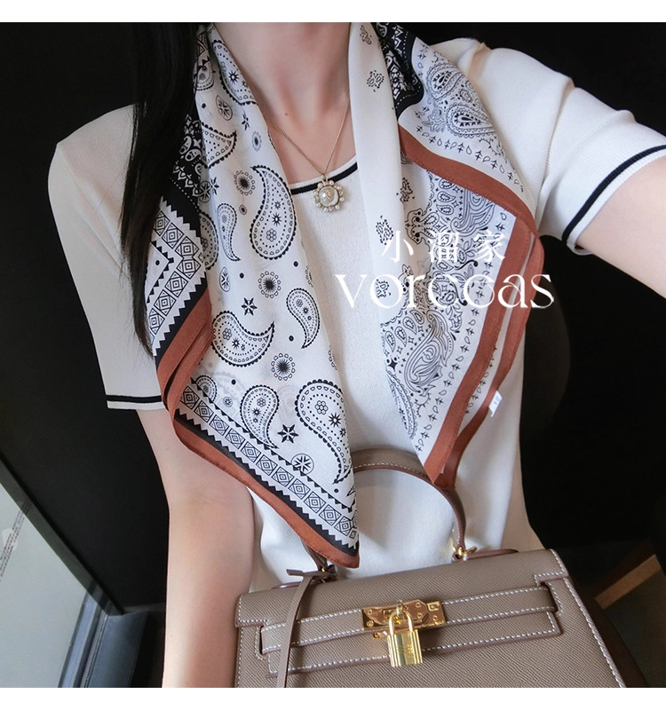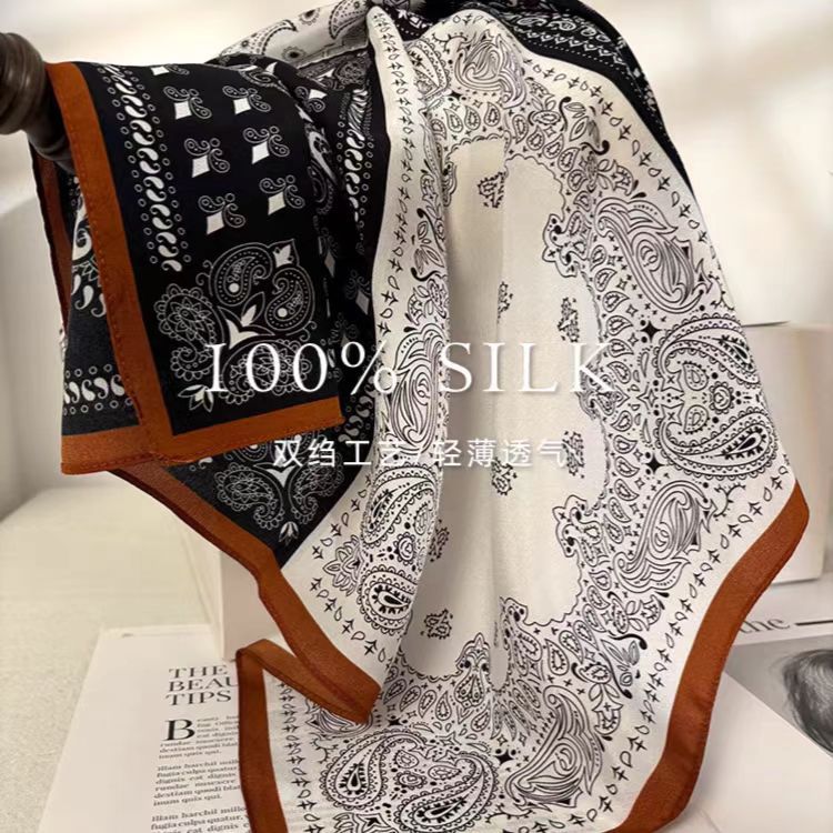 100% 실크 더블 크레이프 65 메일라드 캐슈넛 스퀘어 스카프 여성용 봄 여름 얇은 고급스러운 실크 스카프