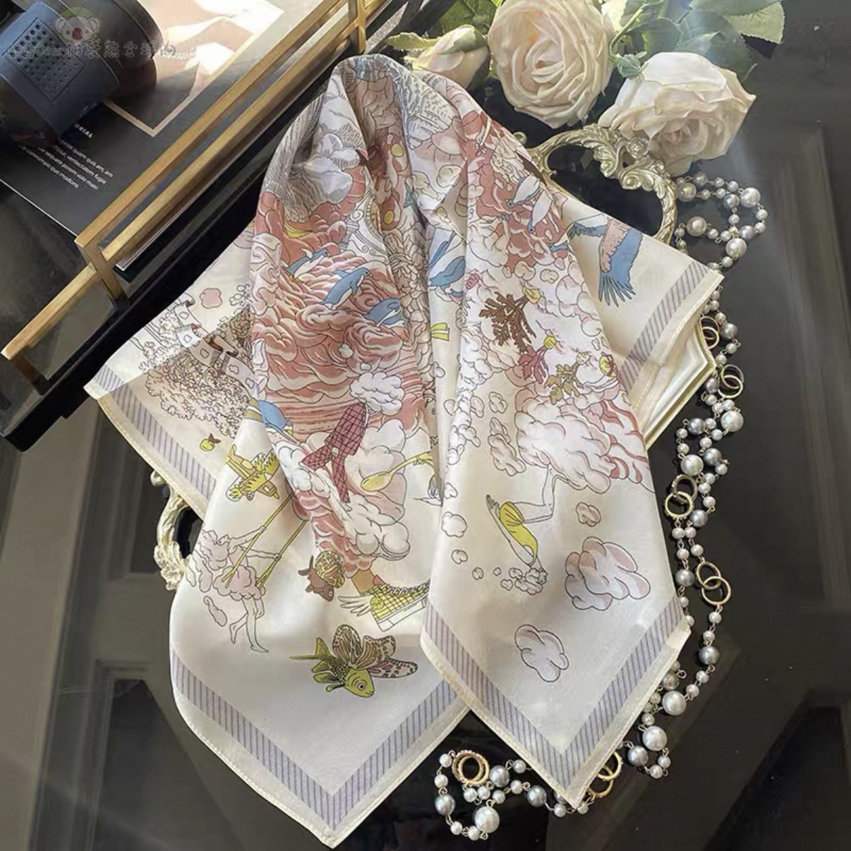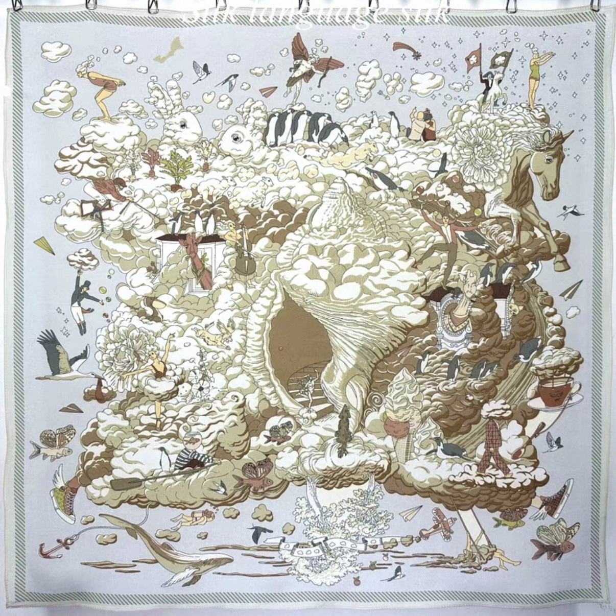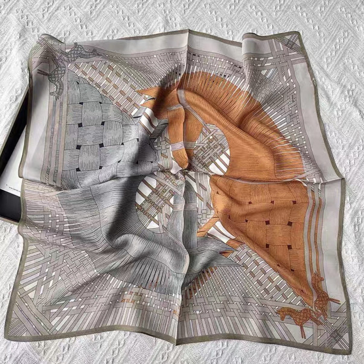 • 65*65cm [실크 크레이프 드 신] 두 마리의 말이 사랑을 엮는다
