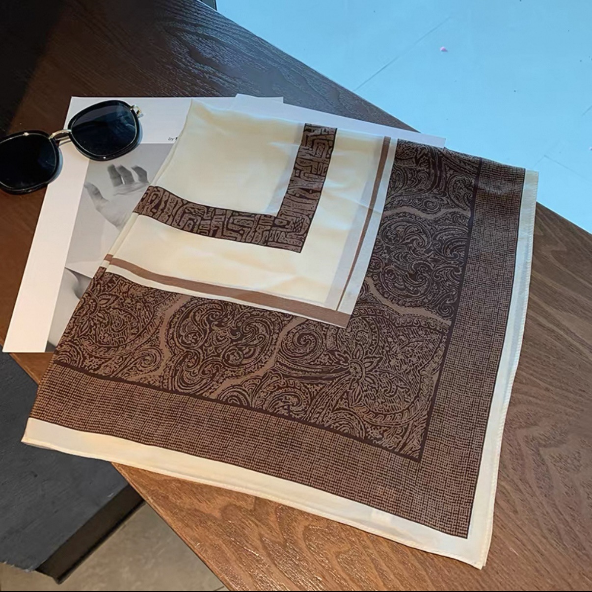 • 65*65cm [실크 크레이프 드 신] 캐슈 프레임 커피 컬러