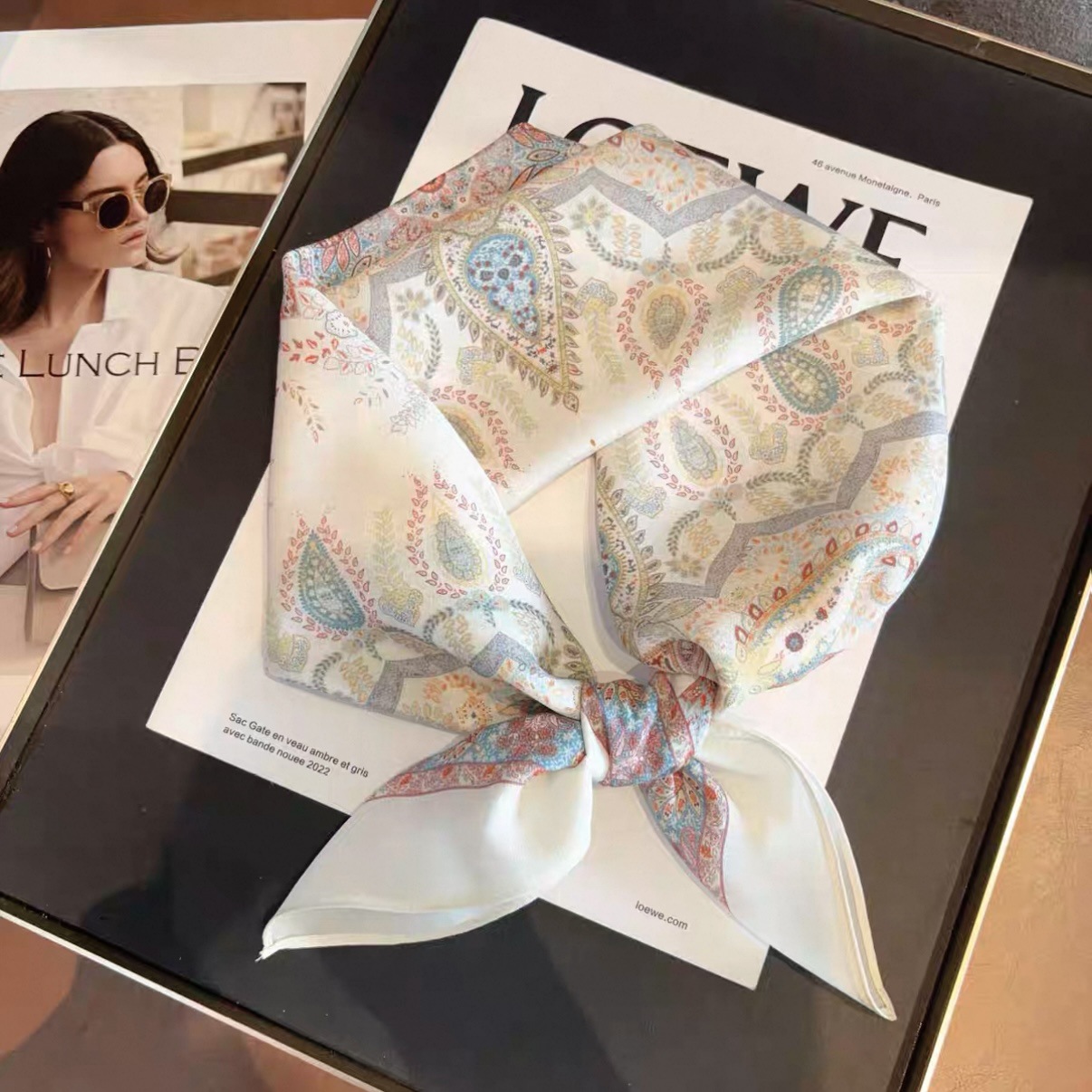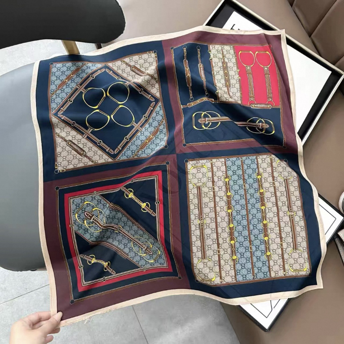 • 65*65cm [실크 크레이프 드 신] 네 모서리 가죽 버클