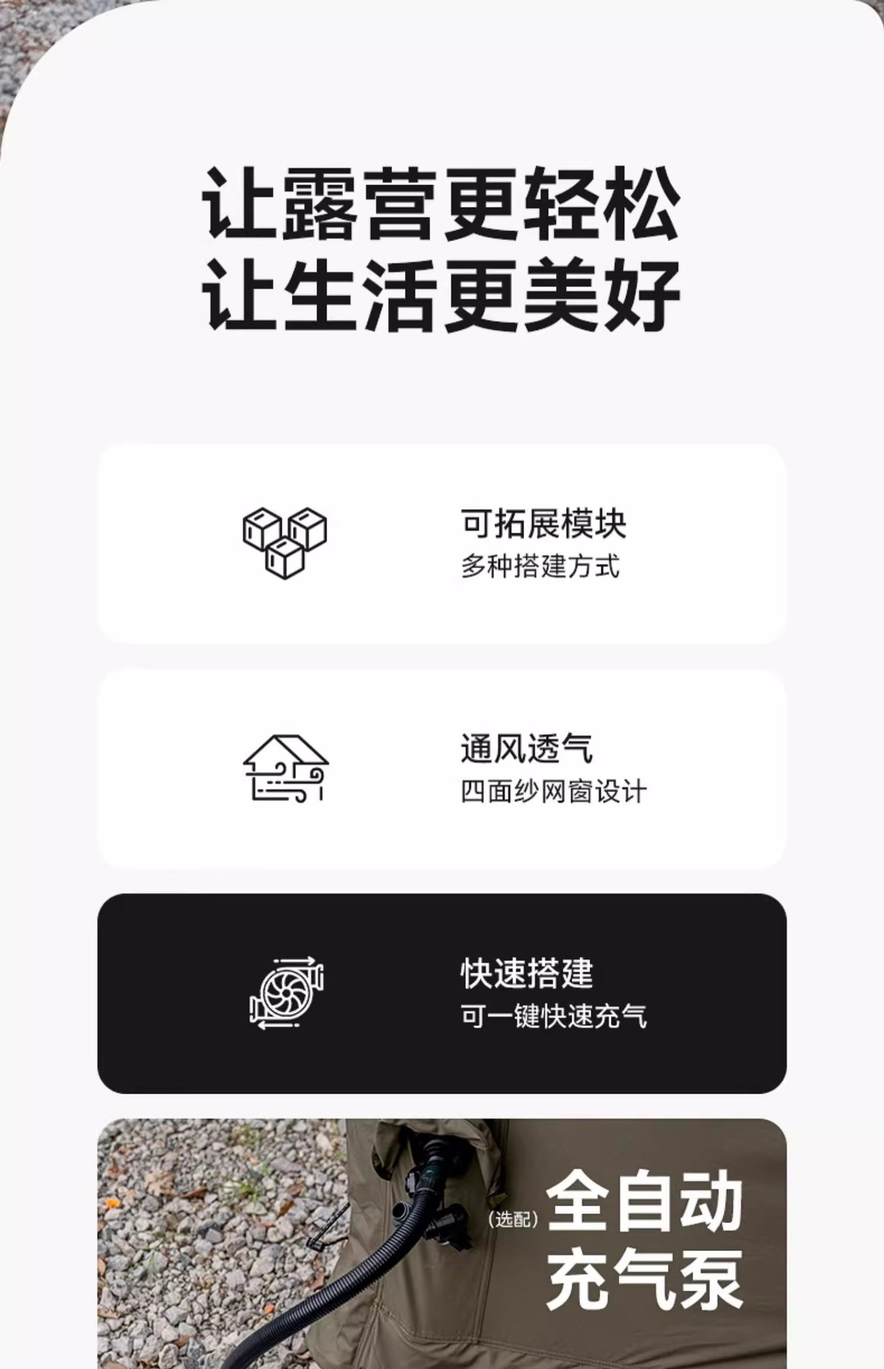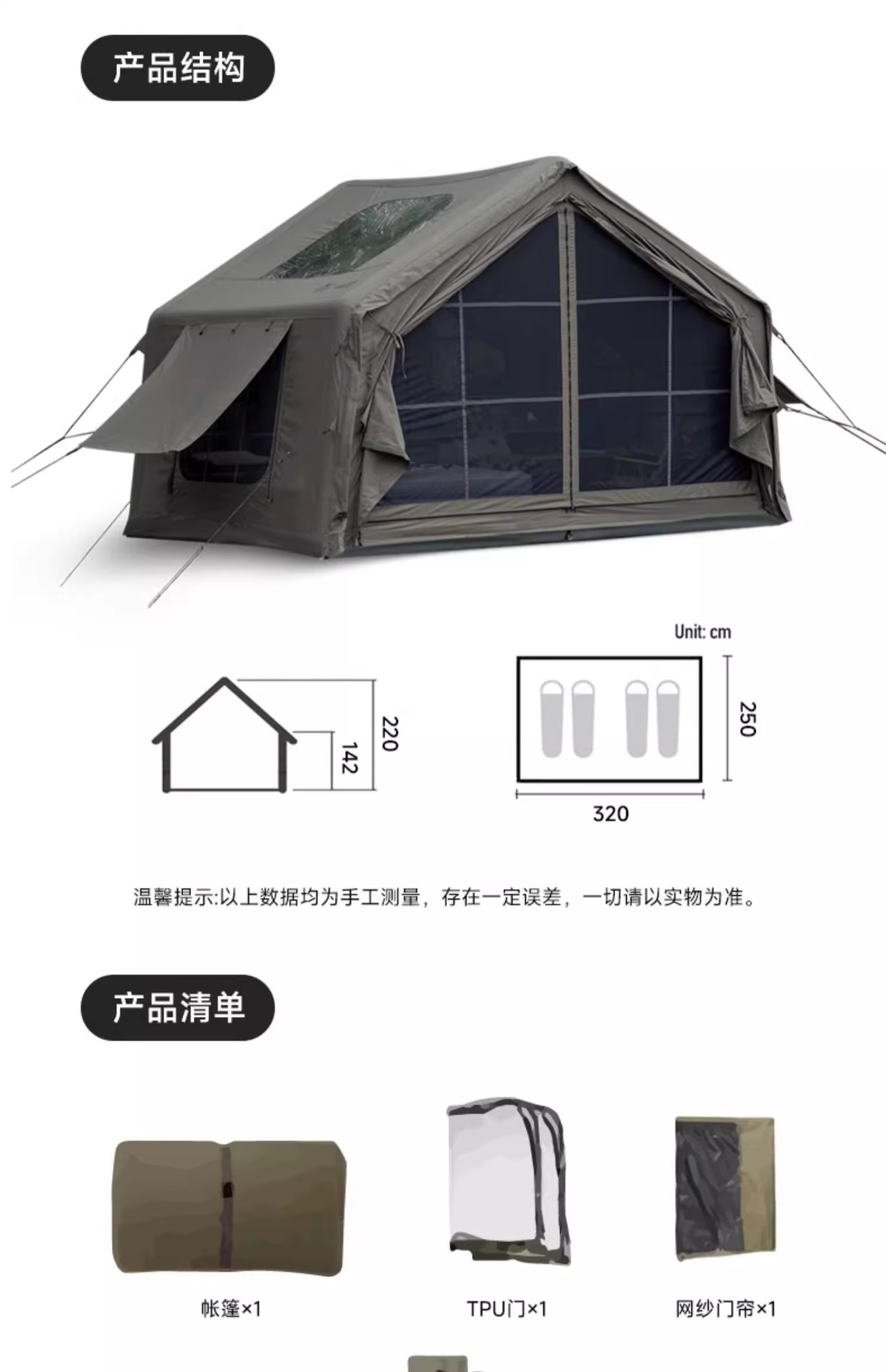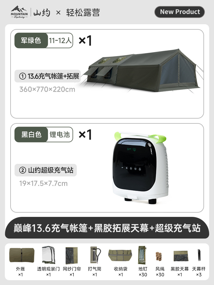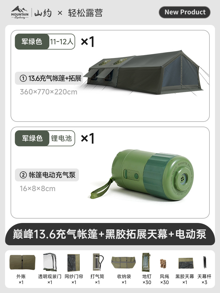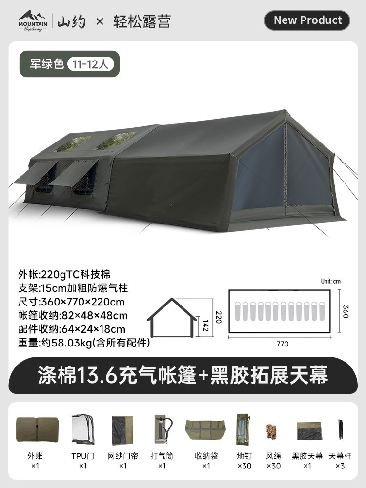 • 피크·코튼【13.6㎡】메인 텐트 + TPU 도어 + 메쉬 커튼 + 슈퍼 인플레이션 스테이션