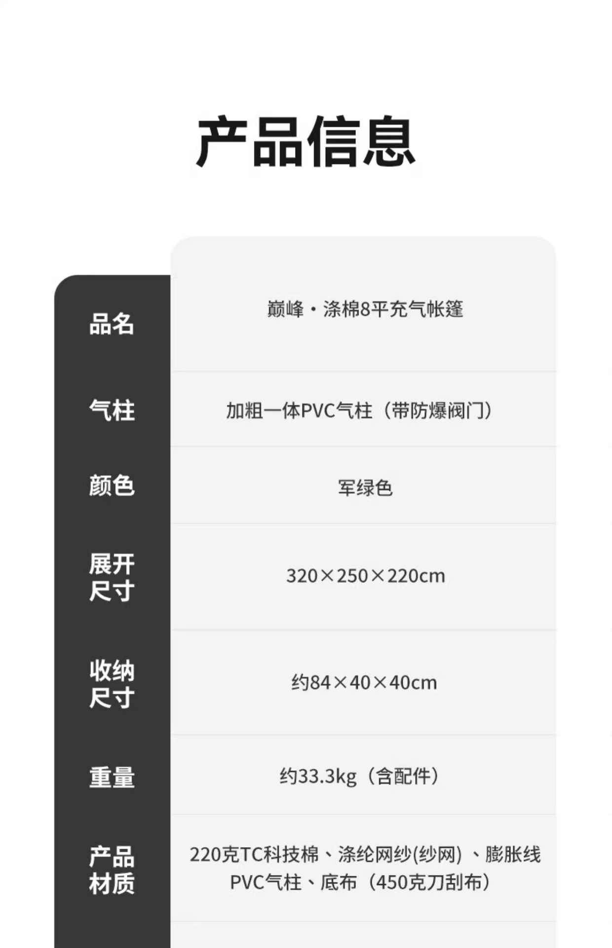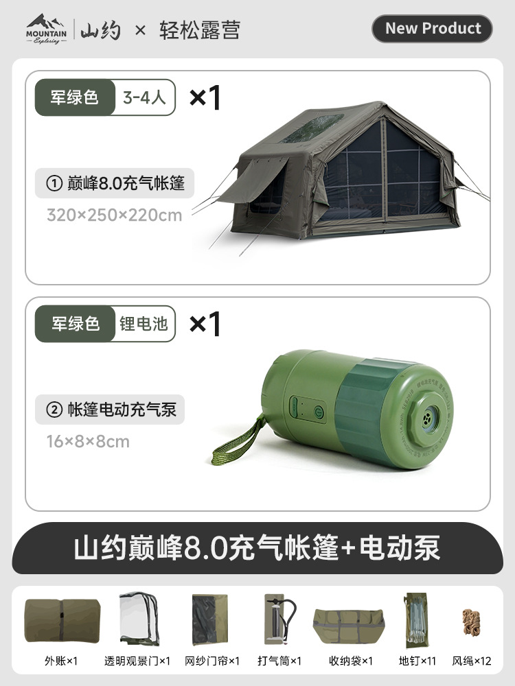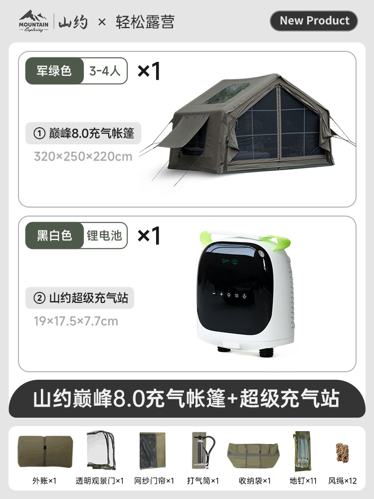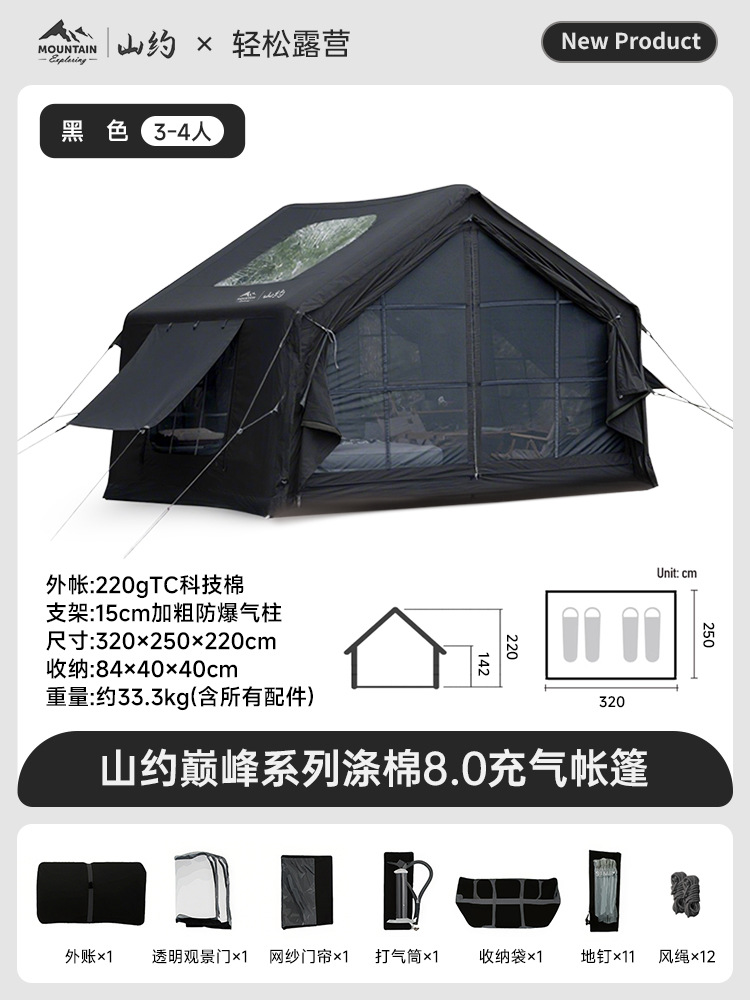 • 피크·코튼【8㎡】메인 텐트 + TPU 도어 + 메쉬 커튼 + 슈퍼 인플레이션 스테이션