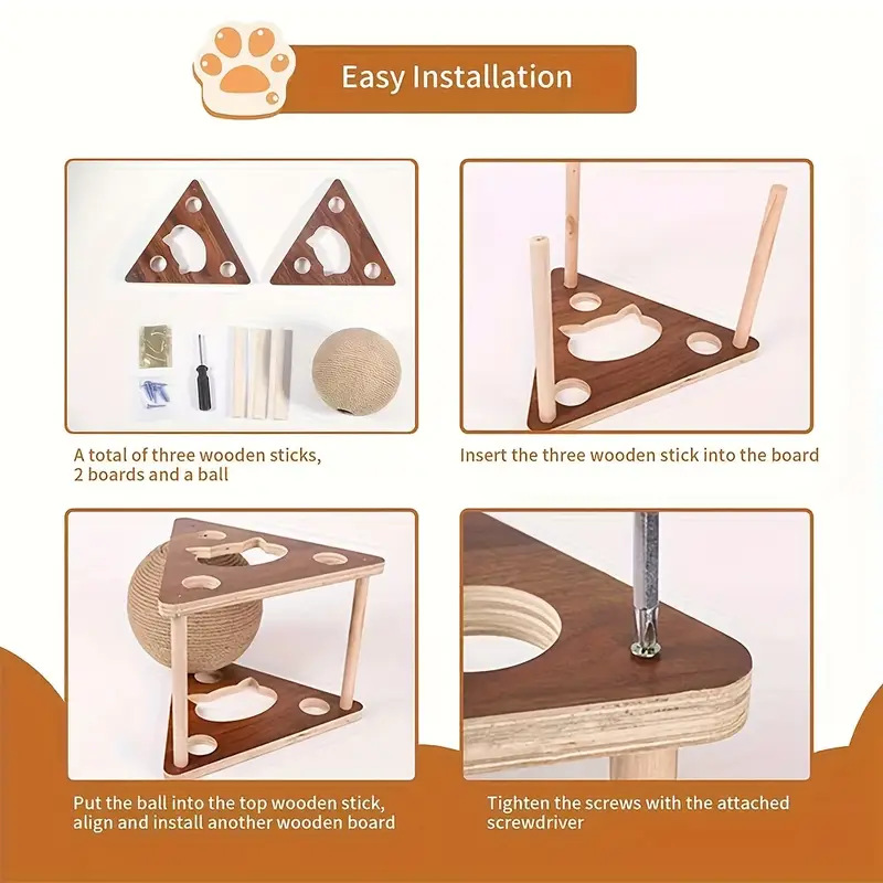 나무 고양이 스크래치볼 고양이 스크래치보드 고양이 장난감 발톱 갈이용 수제 사자털 고양이 클라이밍 프레임 내구성 있는 애완용품스토어 가기