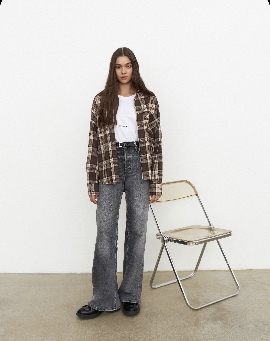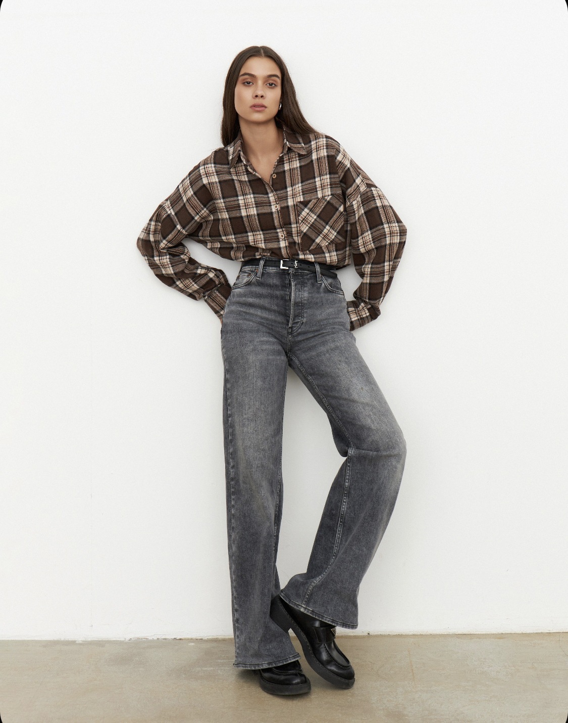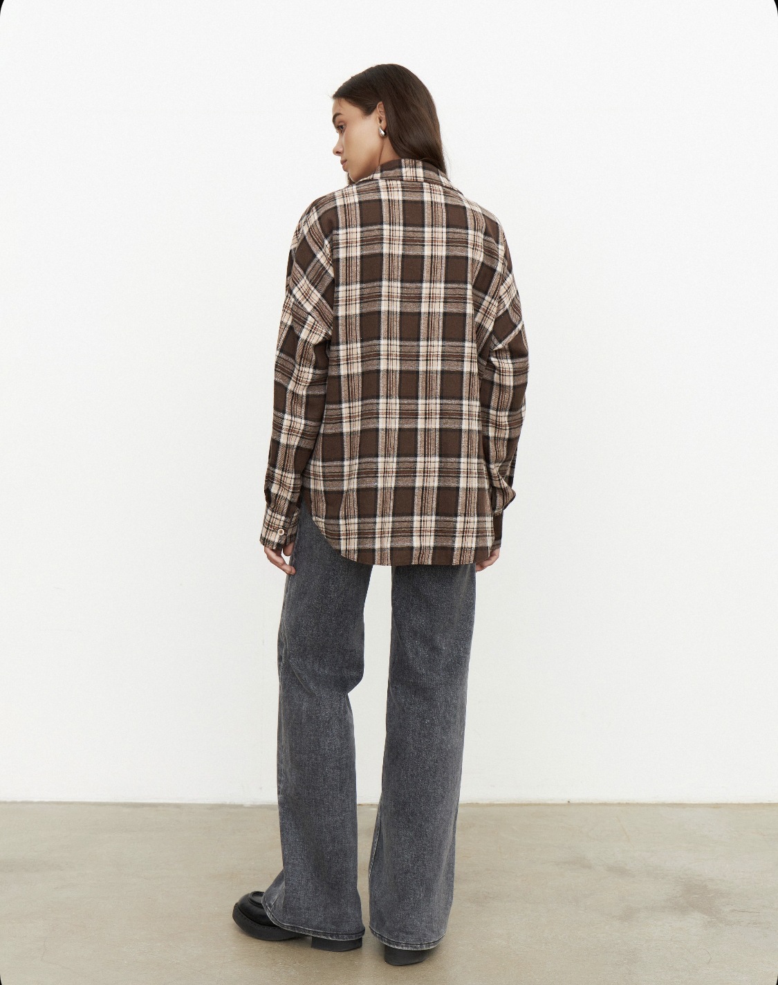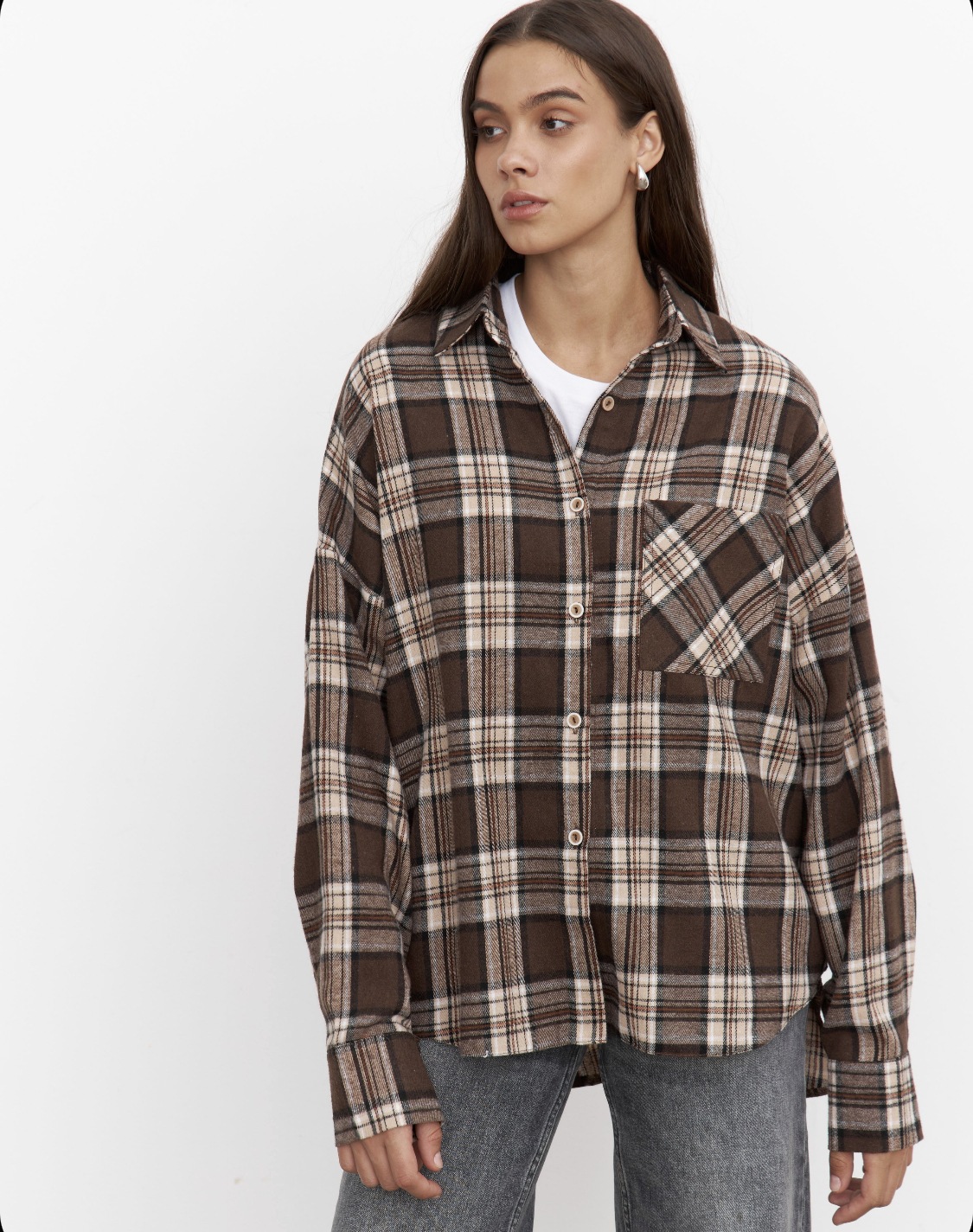 Amazon 봄, 가을 유럽과 미국의 느슨한 복고풍 스타일 다목적 격자 무늬 옷깃 긴팔 셔츠 여성 자켓 포켓 셔츠
