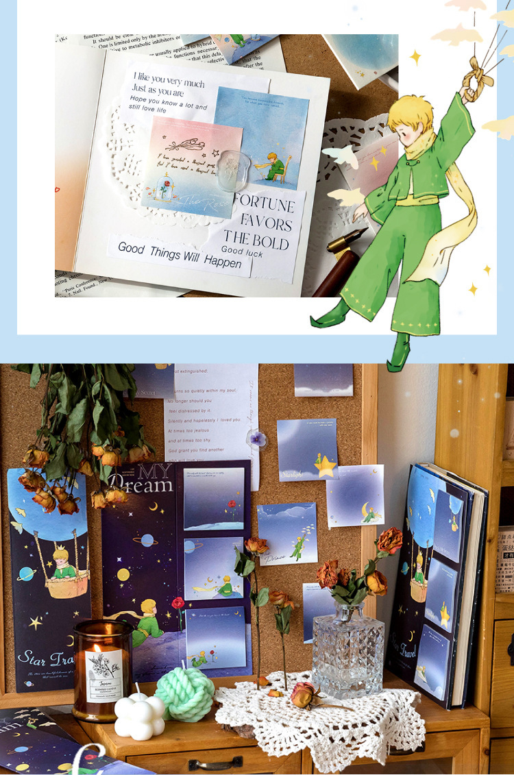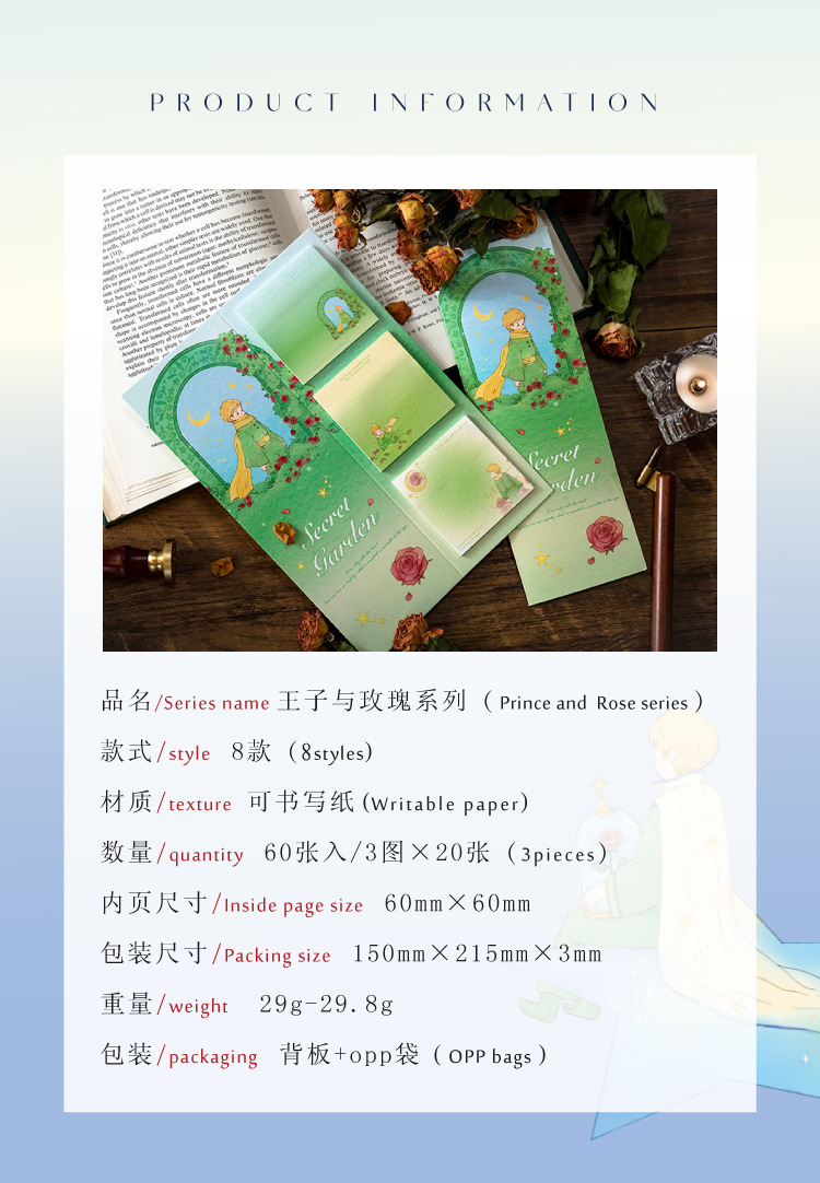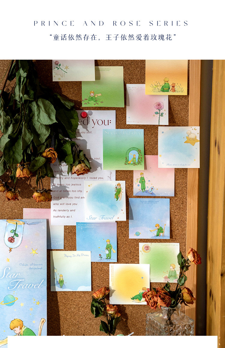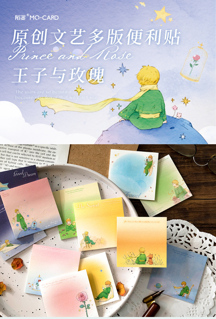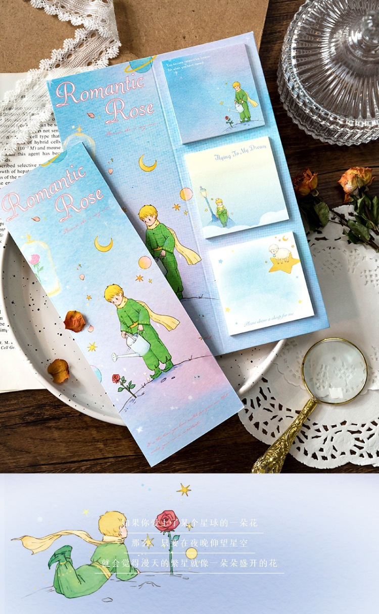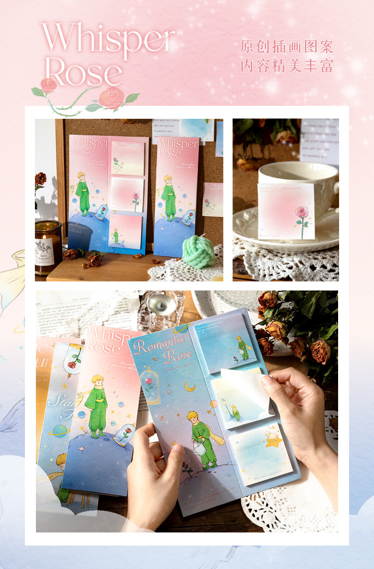 모모 왕자와 장미 시리즈 스티커 메모 로맨틱 동화 그라데이션 DIY 핸드북 기본 발췌 메시지 자료스토어 가기