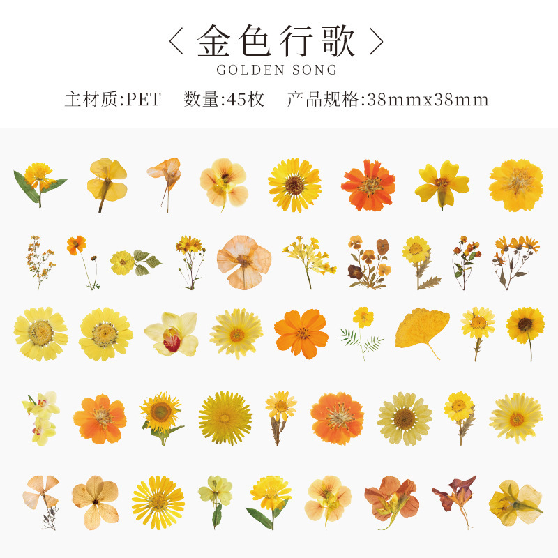 Sugar Poetry Lianlian Huayu 시리즈 PET 박스형 스티커 INS 꽃 핸드북 DIY 장식 스티커 45장 6가지 스타일