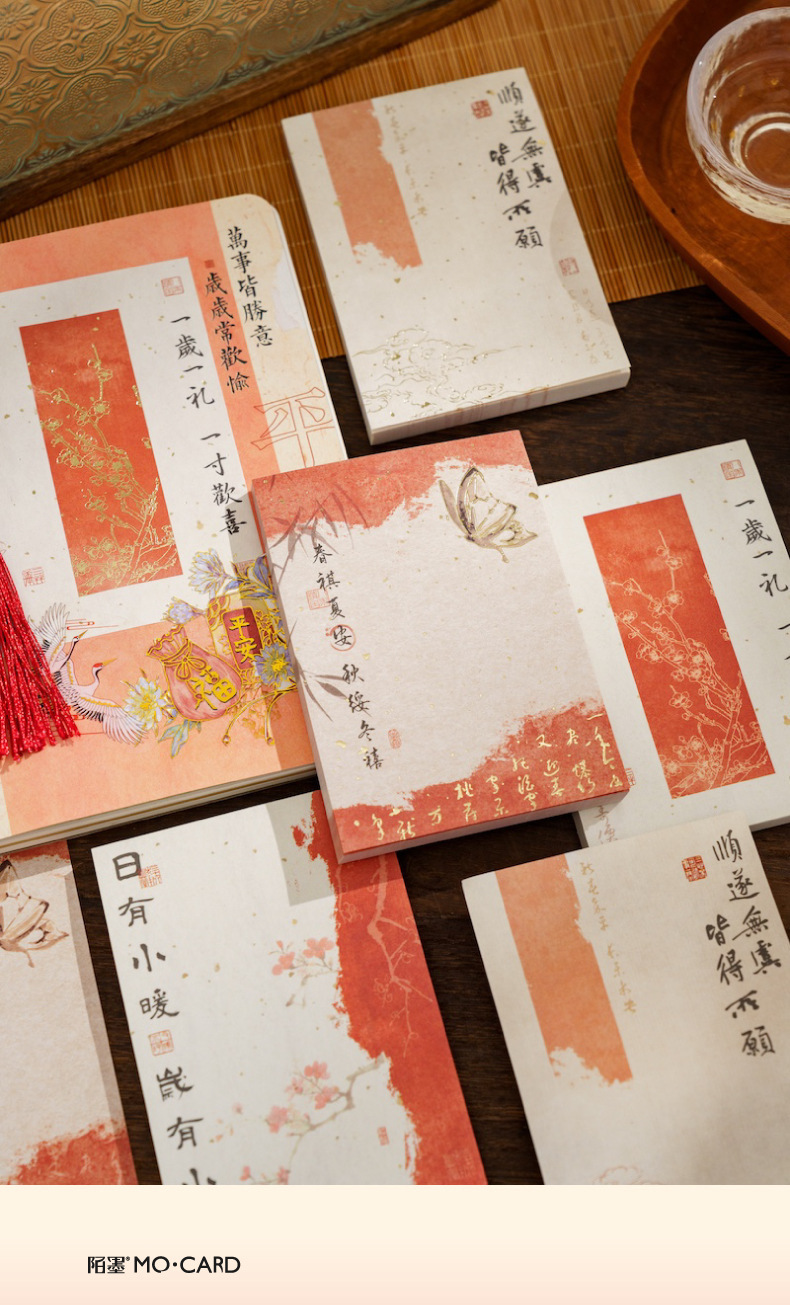 Momo Changle Chang'an 시리즈 노트 패드 중국 스타일 서예 텍스트 축복 메시지 메모장 장식 재료