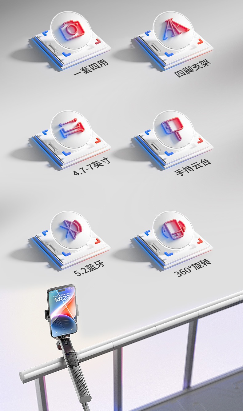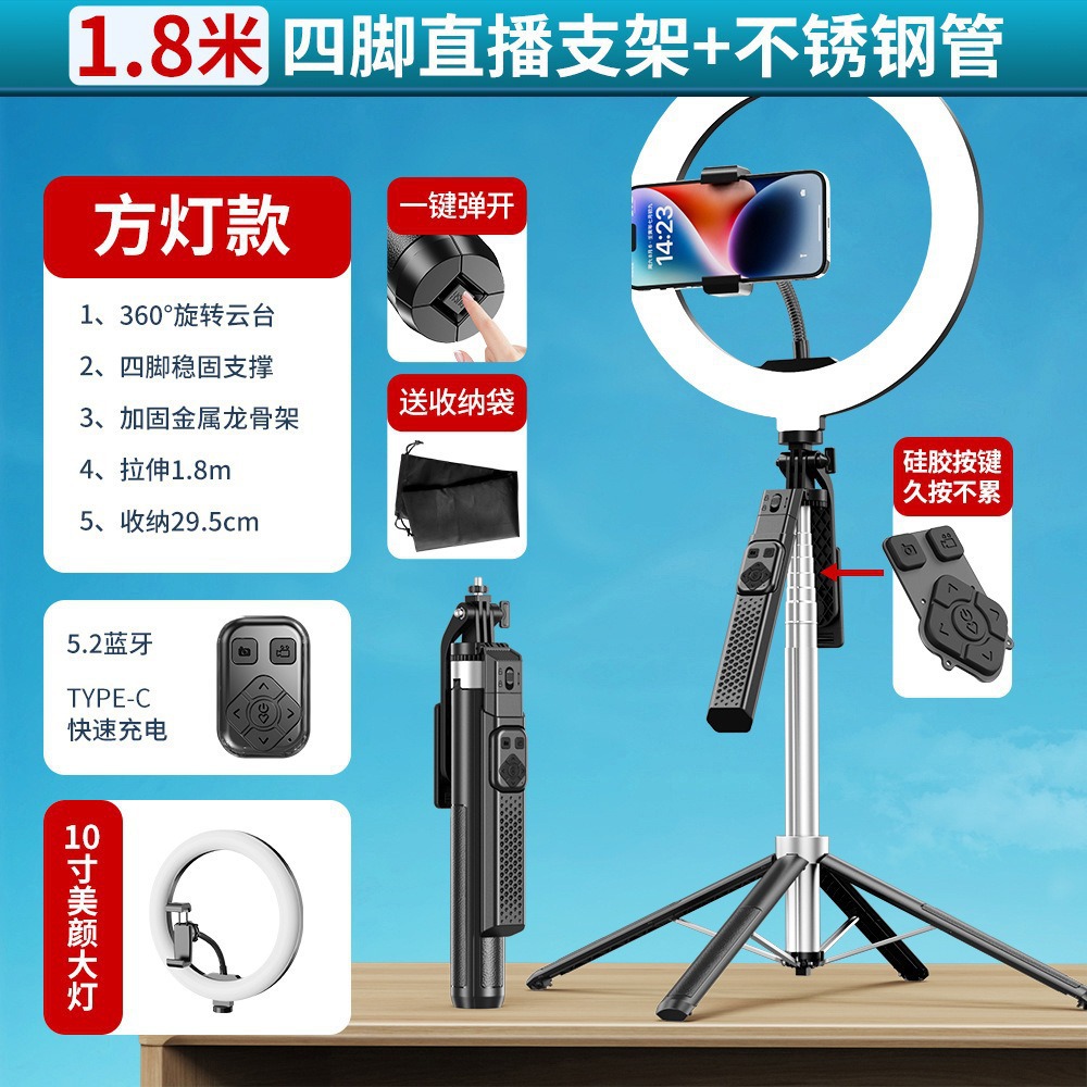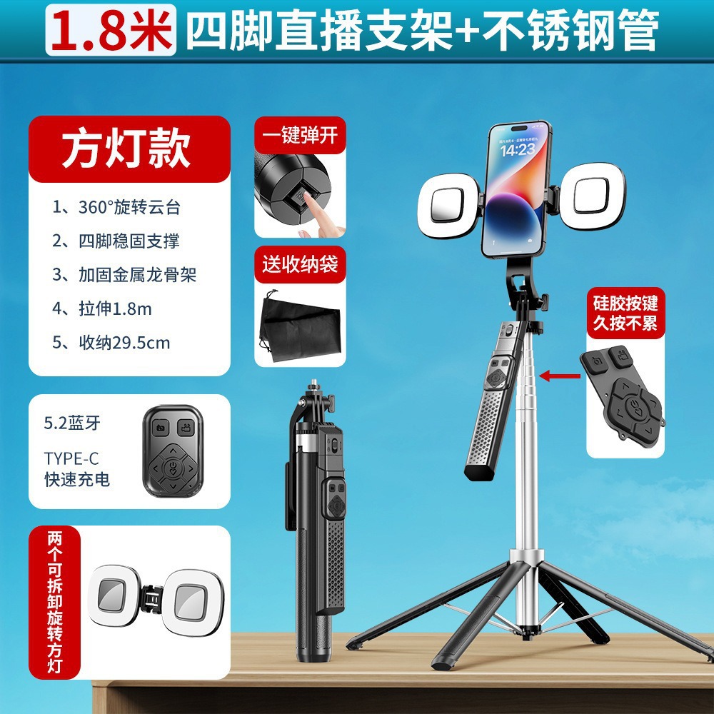 국경 간 새로운 P525TK 셀카 스틱 블루투스 원격 제어 손떨림 방지 4 코너 라이브 방송 브래킷 휴대용 안정적인 셀카 스틱