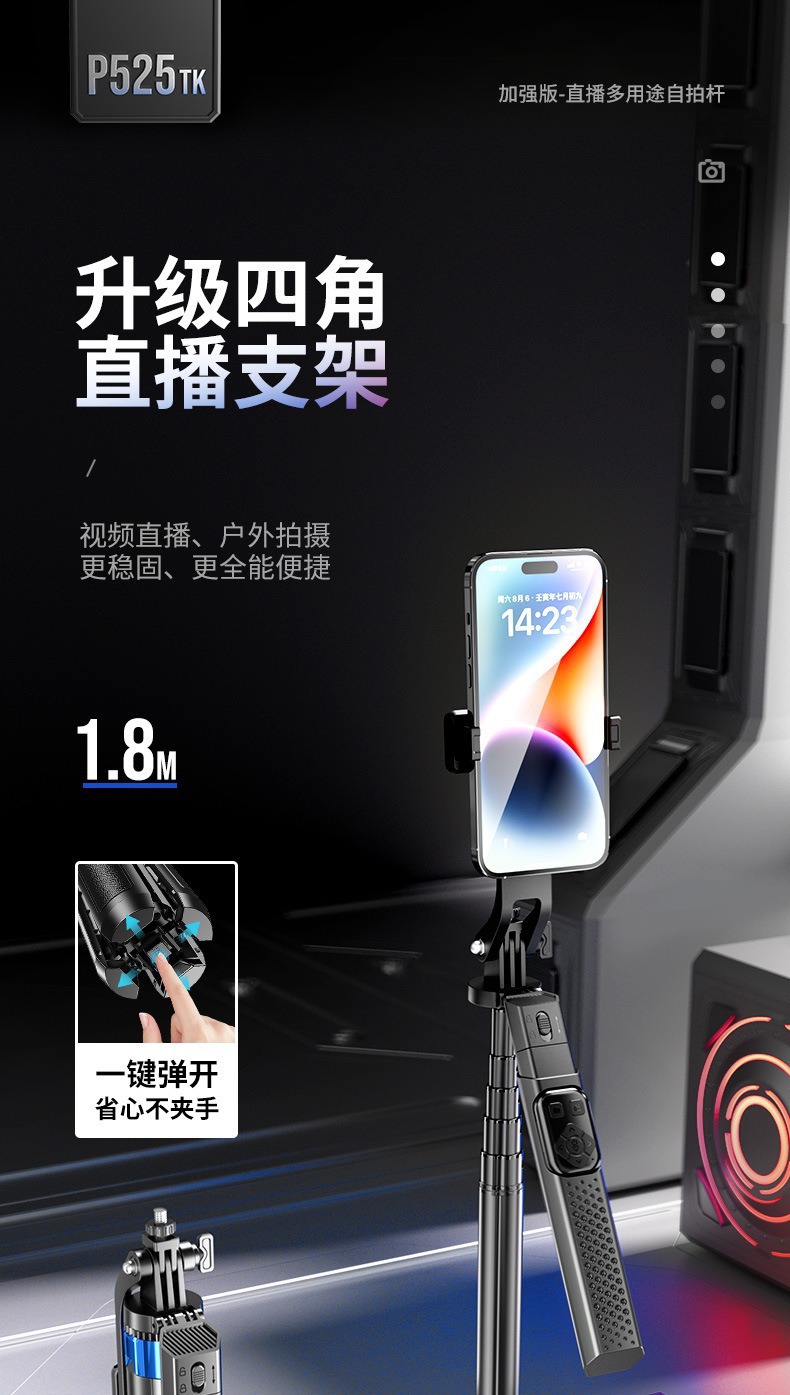 국경 간 새로운 P525TK 셀카 스틱 블루투스 원격 제어 손떨림 방지 4 코너 라이브 방송 브래킷 휴대용 안정적인 셀카 스틱스토어 가기