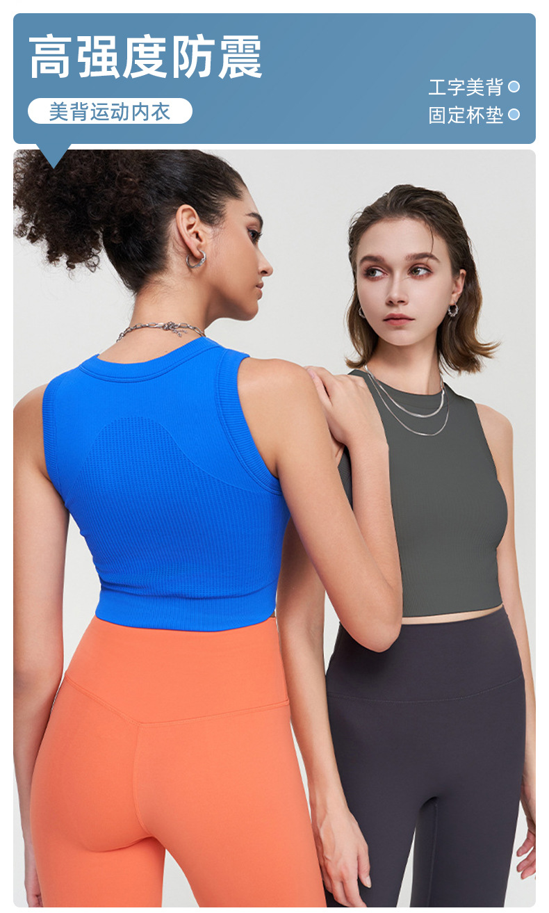 가슴 패드가 있는 여름 일체형 고정형 통기성 스포츠 속옷 요가 조끼 여성 피트니스 충격 방지 러닝 탑스토어 가기