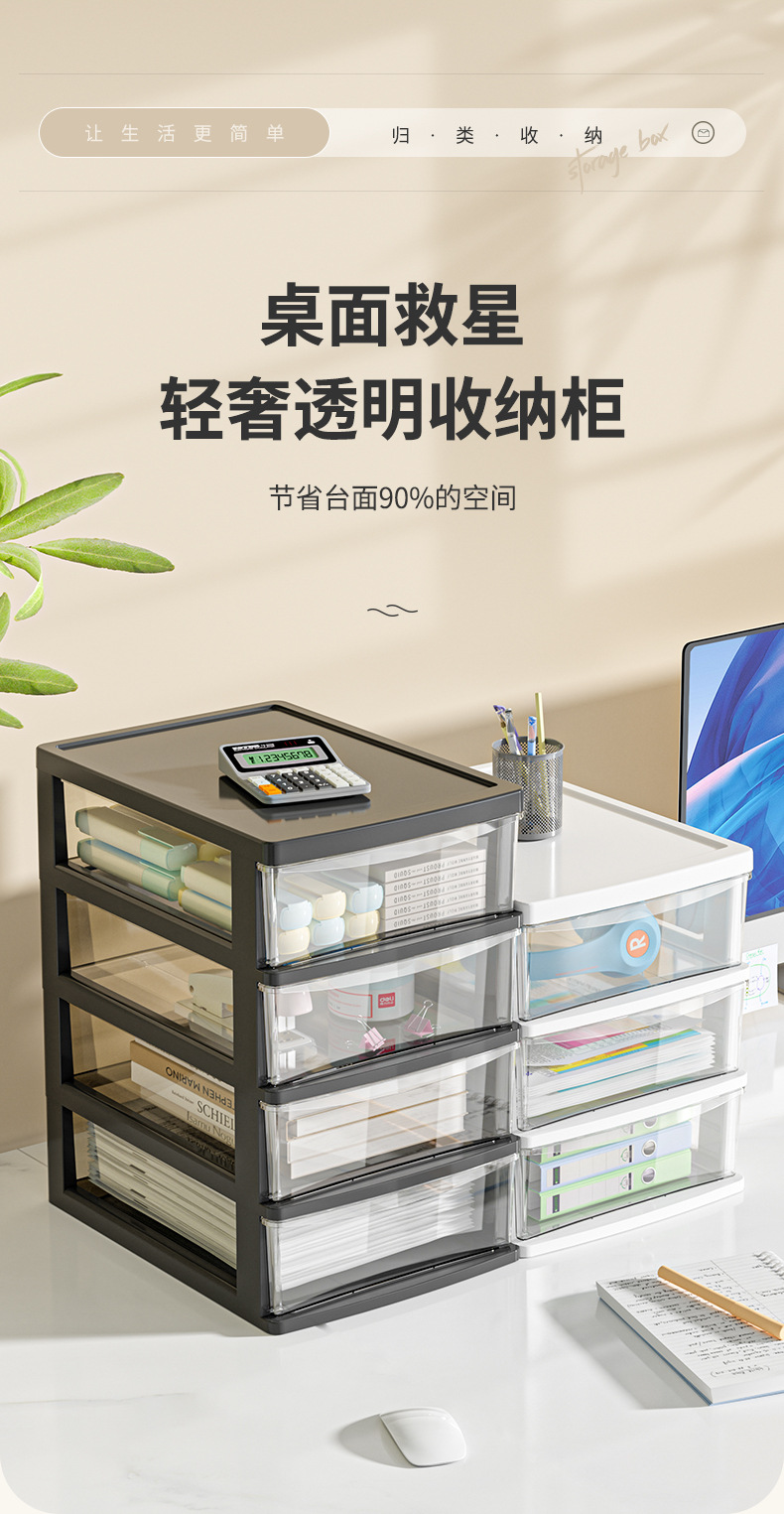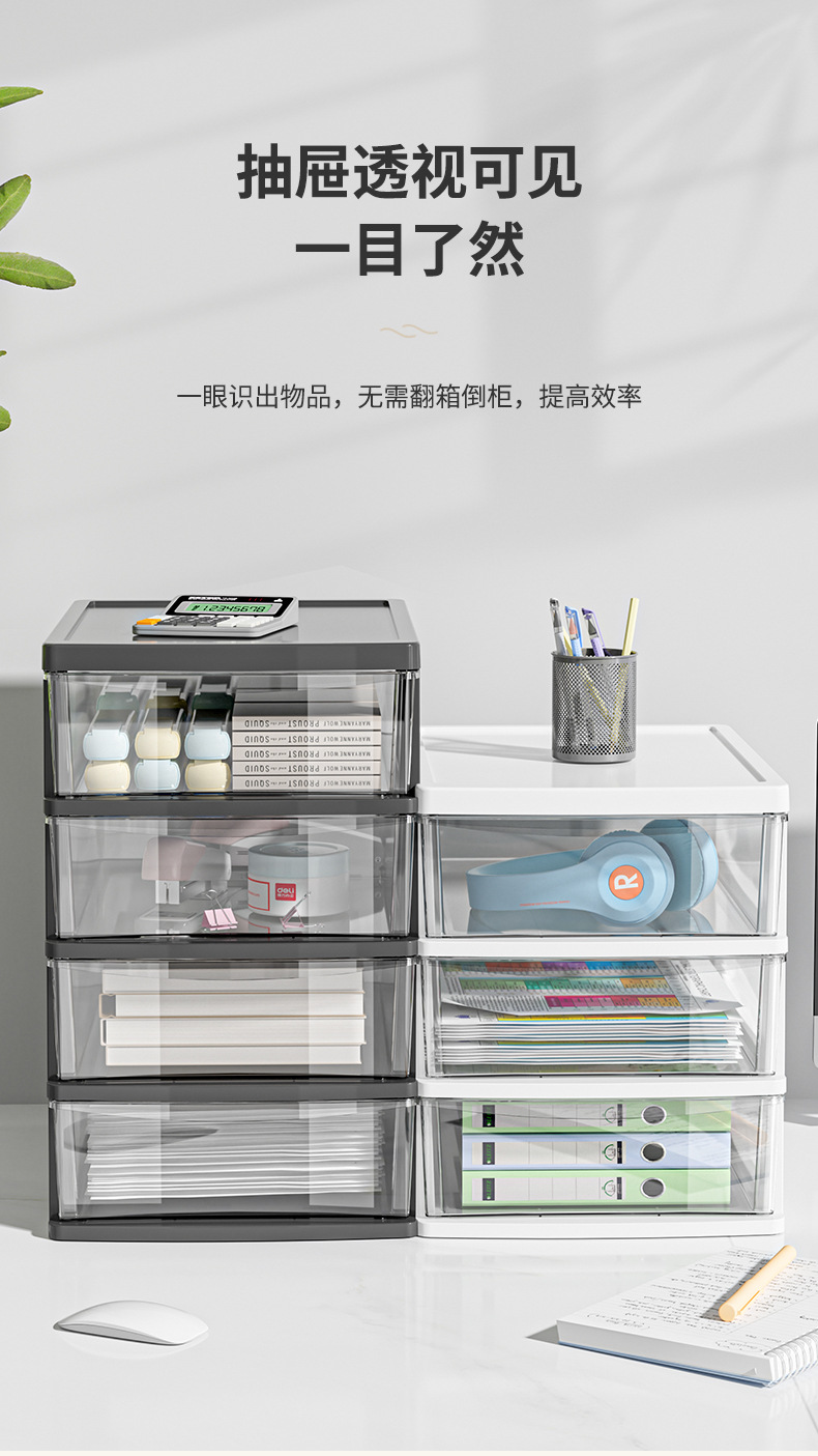 국경을 넘는 데스크탑 수납장 투명 서랍형 옷장 수납함 사무실 책상 문구류 잡화 수납함